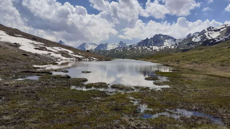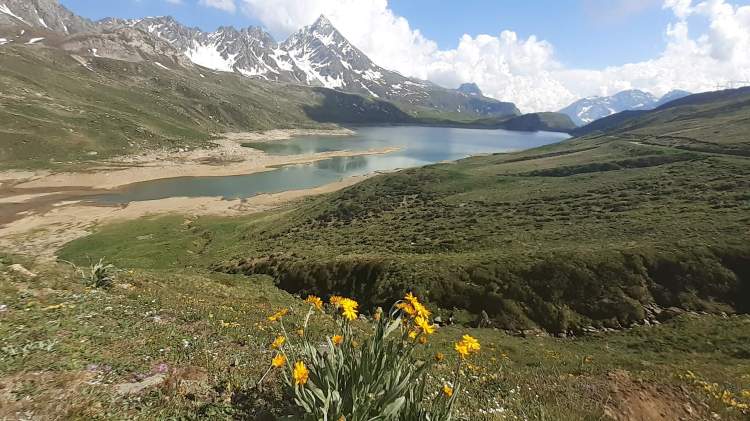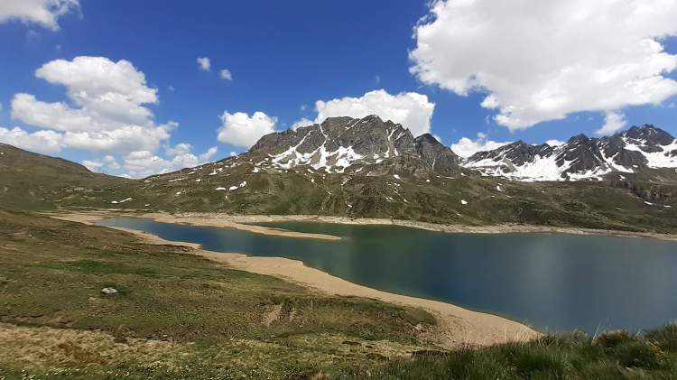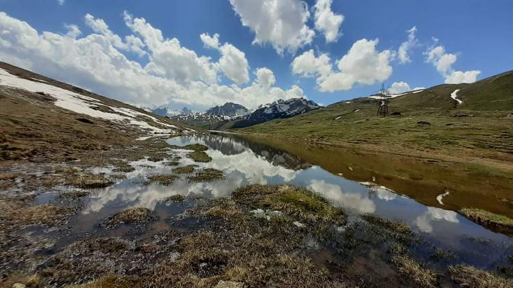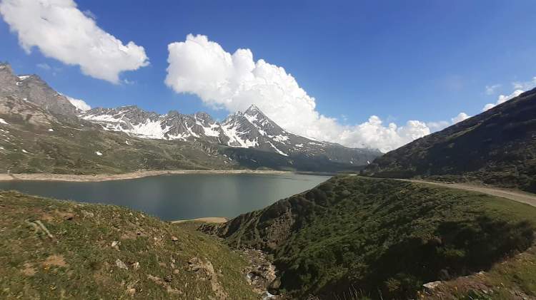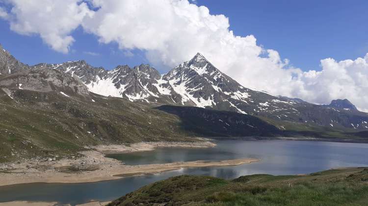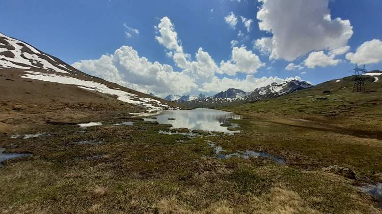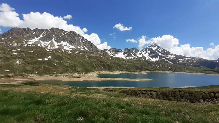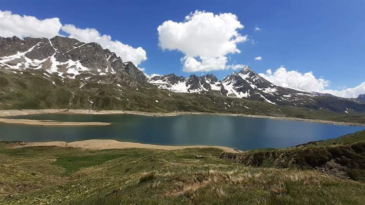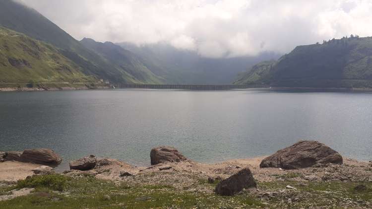 Oggi finalmente torniamo a viaggiare in camper!! Hymer…. sei pronto? SI PARTE!! La nostra destinazione è la Val Formazza, precisamente il piccolo borgo di Riale (1720 m). Arriviamo di mattina e, dopo aver parcheggiato il camper sotto la diga di Morasco, iniziamo subito a salire. In prossimità del piccolo ponte comincia il percorso, che può essere fatto su comoda e ampia sterrata o prendendo le varie “direttissime” (più brevi, ma anche più ripide; p.s. se procedete su sterrata, allungherete di un po’ il percorso complessivo). Scegliamo le “direttissime”, concedendoci diverse soste per le fotografie. Raggiungiamo così il Rifugio Maria Luisa, dal quale si vede già la diga del Lago Toggia. Saliamo e decidiamo di mangiare davanti allo spettacolo del bellissimo Lago Toggia (2190 m). Ci rimettiamo poi in cammino, costeggiando tutto il versante del Lago a sinistra della diga. Il panorama è eccezionale e la Punta Kastel ci accompagna per tutto il percorso, molto suggestivo e molto “fotogenico”, fino alla fine del Lago. Ma ancora non siamo arrivati…. è davvero molto lungo! Procediamo, mentre la ripidità, quasi nulla in prossimità del Lago, accenna ad aumentare. Continuiamo così fino al Passo San Giacomo (2313 m)… davanti a noi lo stupendo Laghetto del Passo San Giacomo, dove le foto e i video non mancano! Breve sosta e poi raggiungiamo, poco distante da qui, anche la croce di legno, che sorge esattamente al centro di un panorama spettacolare…. vette, cime, valloni, ripidi pendii, traversi di neve e ghiaccio, roccia, distese erbose… semplicemente uno spettacolo per gli occhi. Rimaniamo un po’ ad ammirare tutto quello che la natura gentilmente ci offre in maniera così generosa e poi ci prepariamo a tornare indietro. Ripercorriamo lo stesso tragitto dell’ andata, sperando che i nuvoloni grigi rimangano lontani… almeno fino all’ arrivo a Riale (1720 m)! Infatti non cade nemmeno una goccia d’ acqua! Stanchi… piuttosto stanchi, ma molto più felici e soddisfatti che stanchi, torniamo al parcheggio dei camper, dove ci aspetta il nostro Hymer! Bellissima prima giornata, con panorami superlativi!