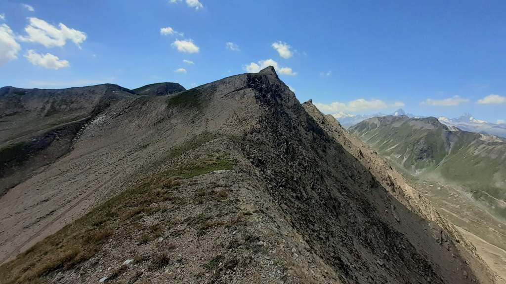 Inizia il weekend del compleanno di Francesco e andiamo a festeggiarlo in Val Formazza, a Riale! Sabato mattina partiamo dall’ area sosta camper di Riale (1730 m) e, seguendo tutte le “direttissime” alternate ad alcuni tornanti, saliamo verso il Rifugio Maria Luisa (indicato dai cartelli). Arrivati al Rifugio Maria Luisa (2150 m) saliamo alla vicina e già visibile Diga del Lago Toggia (2190 m). Da qui proseguiamo a sinistra della diga e, dopo circa 500/600 m, troviamo in cartello che indica “Punta Elgio”. Qui inizia la salita che, per una prima parte, si sviluppa su continui “balzi erbosi” con conseguente perdita/riguadagno di quota! Il panorama è già bellissimo da qui! Proseguiamo fermandoci per diverse soste fotografiche. Continuiamo e a quota 2600 m circa il percorso cambia, diventando più pietroso/sassoso e anche più ripido! Saliamo lungo un “canalone” ripido e franoso che ci porta sotto la vetta… l’ “ultimo strappo” è roccioso, ripido ed esposto (si sale con l’ aiuto delle mani!) Ed eccoci in vetta alla Punta Elgio (Helgenhorn)!! (2837 m) ed è spettacolare!! Il panorama è qualcosa di unico, immenso e grandioso!! Ci sono proprio tutti… il Lago Toggia, il Lago Kastel e la Punta Kastel, la Cima di Valrossa (davanti a noi), la Val Bedretto, il percorso del Gries (anche una piccola parte del Lago del Gries), il Passo San Giacomo e tanti altri! La vetta è rocciosa ed è anche molto esposta… cerchiamo un piccolo posticino dove mangiare, ammirando tutto questo spettacolo!! E’ arrivato il momento di scendere. Di nuovo il “canalone” ripido e franoso, poi i continui “balzi erbosi” ed eccoci tornati al Lago Toggia, alla Diga del Lago Toggia (2190 m), al Rifugio Maria Luisa (2150 m) e, scendendo lungo le “direttissime”, torniamo a Riale (1730 m). Giornata favolosa e grandiosa, percorso piuttosto impegnativo ma soddisfacente!