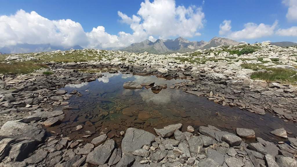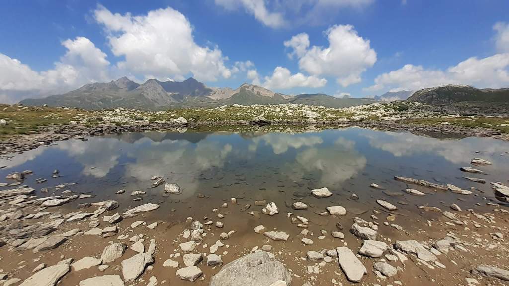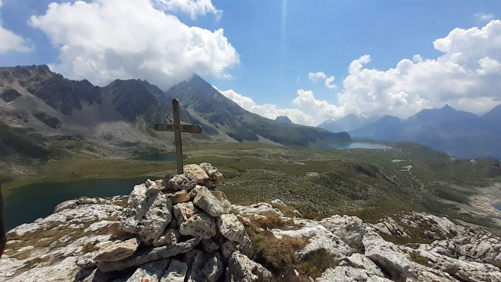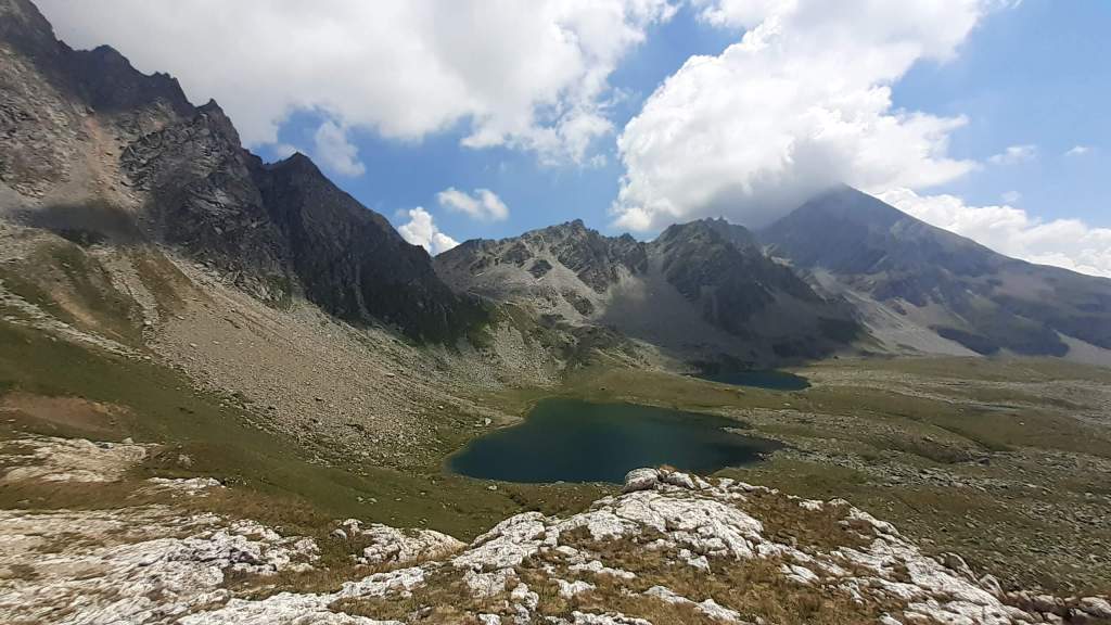 Oggi facciamo un percorso che conosciamo già piuttosto bene ma che è sempre bellissimo! Partiamo dall’ area sosta camper di Riale (1730 m) e saliamo su “direttissime” lungo il versante del Kastel fino al bivio Kastel/Toggia, dove prendiamo a destra e arriviamo al bellissimo Lago Kastel (2230 m). Proseguiamo in direzione dell’ Alpe Kastel e poi seguiamo il sentiero sempre visibile e tracciato che ci porta al Primo dei Laghi del Boden (2330 m)… stupendo come al solito! Foto su foto e continuiamo fino al Secondo Lago del Boden, dove cerchiamo un posticino tra le pietre e le rocce per mangiare il panino. Raggiungiamo poi anche il Terzo Lago del Boden e poi il vicino Quarto Lago del Boden (2370 m). Ci portiamo alla fine dell’ ultimo Lago del Boden e da qui saliamo verso la Rupe del Gesso. La salita adesso è un po’ più ripida ma niente di difficile e, in poco, eccoci sulla vetta della Rupe del Gesso (2450 m)! Il panorama è eccezionale!!! Scattiamo tantissime foto e poi ci prepariamo a scendere, lungo lo stesso percorso della salita… Laghi del Boden (2370-2330 m), Alpe Kastel, Lago Kastel (2230 m)… scendiamo fino in riva e ci concediamo una piccola pausa davanti al Lago. Il Lago Kastel presenta un livello di acqua molto basso e la riva è arida e secca… l’ emergenza idrica è arrivata fin qui! Nonostante questo il Lago Kastel ha saputo regalarmi lo stesso dei colori unici e stupendi! Salutiamo il Lago Kastel e la Punta Kastel e scendiamo, seguendo le “direttissime”, fino a tornare a Riale (1730 m). Un altro grandioso percorso in una giornata spettacolare… un bel regalo di compleanno per Francesco!
