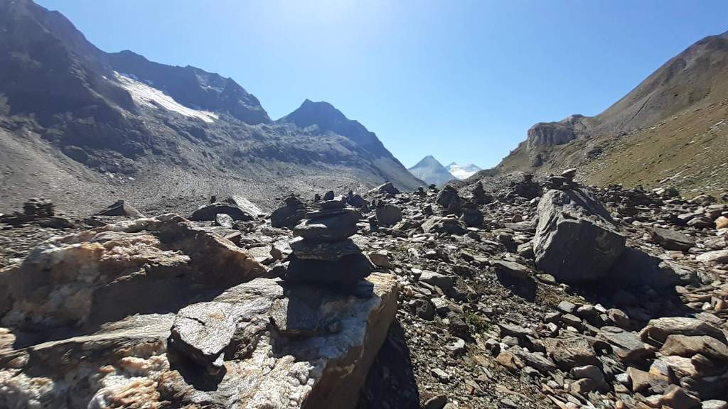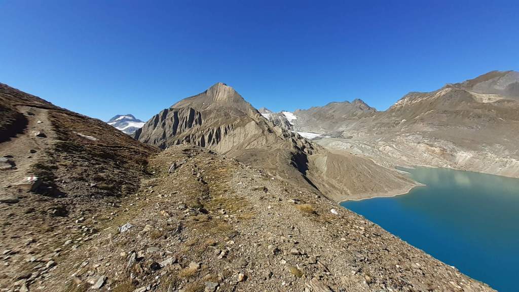 CONSIGLI come tutti i percorsi in montagna anche questo va affrontato con il giusto allenamento fisico e con la giusta attenzione. Questo percorso presenta delle difficoltà : la lunghezza (molto lungo!); la salita/discesa al “belvedere roccioso” non ha un percorso indicato e si segue la traccia (a tratti debole) di un vecchio percorso (a volte improvvisando su pietre instabili e passaggi franosi); la salita/discesa lungo il primo tratto di cresta del Nufenenstock è molto ripida, disconnessa e a tratti esposta.