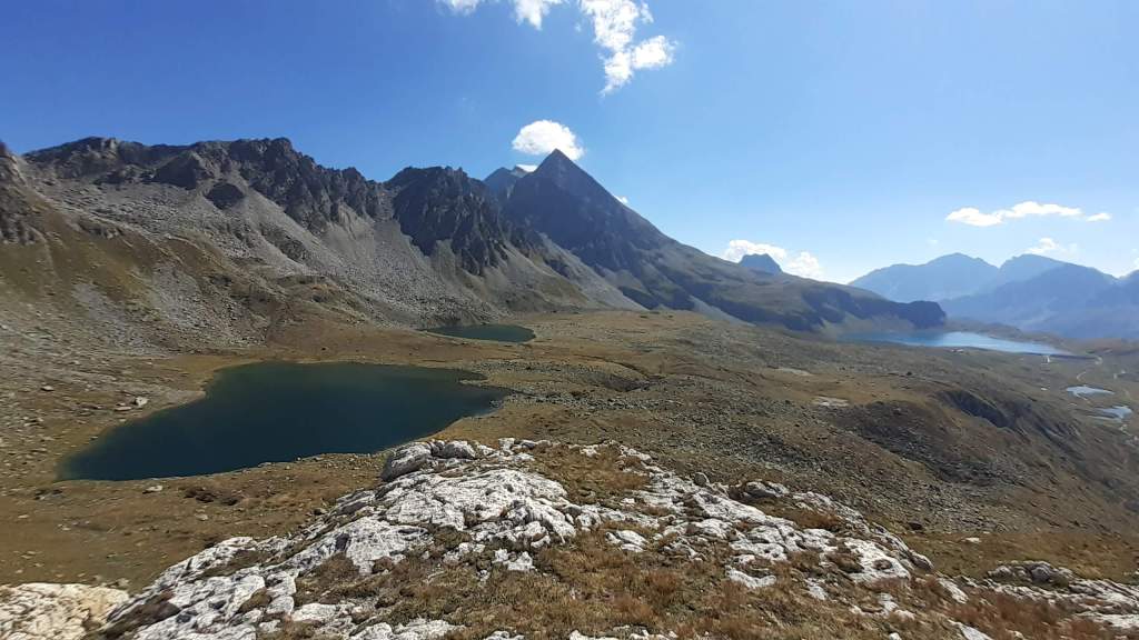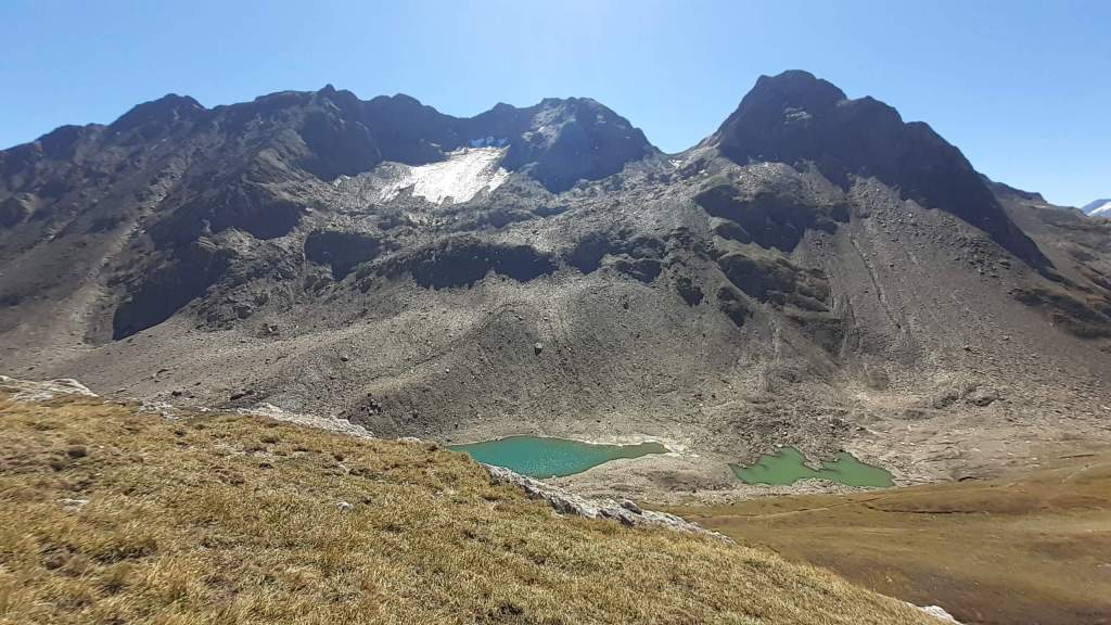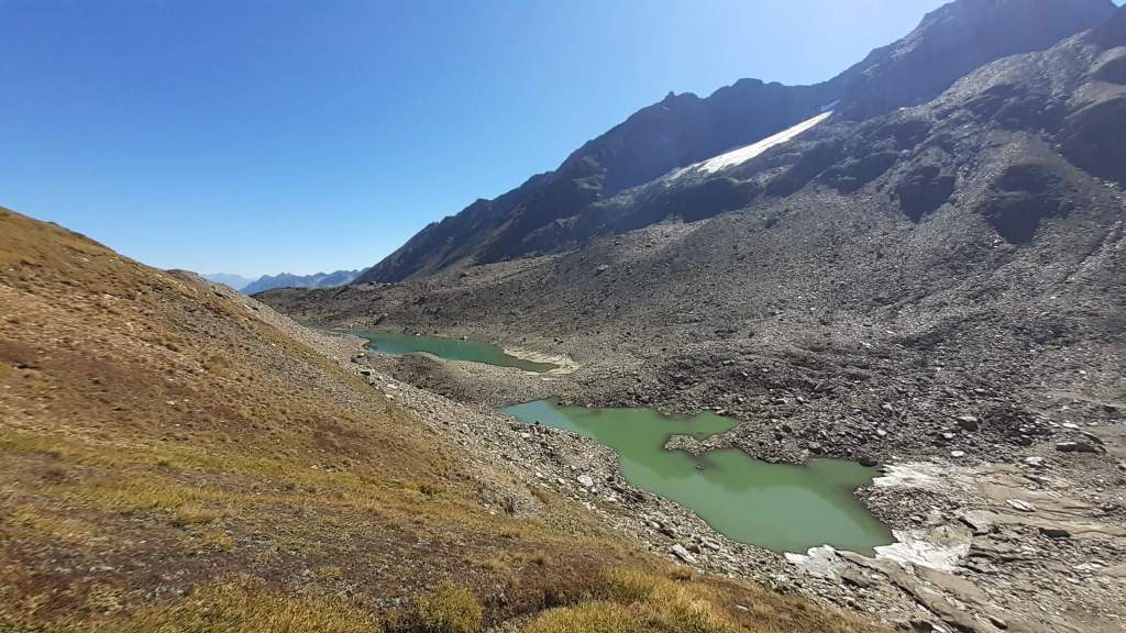 Oggi siamo in Val Formazza… lungo un percorso che conosciamo già, l’ Anello del Gries, ma che oggi percorreremo con delle “aggiunte”. Partiamo da Riale (1740 m) e saliamo alla Diga del Lago di Morasco (1820 m); raggiungiamo la fine del lago e saliamo alla Piana del Bettelmatt (2100 m). Ci portiamo sul versante del Gries e saliamo al Passo del Gries (Griespass) (2479 m). Panorama stupendo sul Lago del Gries, di cui raggiungiamo la fine. Foto su foto e proseguiamo verso il Passo del Corno (2500 m) e ammiriamo dall’ alto i Laghetti del Corno… splendidi! Decidiamo di portarci più in alto per ampliare il panorama e, dopo i Laghetti del Corno, “improvvisiamo” una salita ripida su erba, pietre e tratti franosi fino ad una “bocchetta rocciosa” (2600 m) di una bellezza unica e con straordinario panorama sul Lago e sul Ghiacciaio del Gries, sulla Punta dei Camosci e non solo! Pausa panino e poi continuiamo a salire lungo il primo tratto della cresta del Nufenenstock, ripida, disconnessa e un po’ esposta, fino a 2730 m. Qui la cresta impenna e, siccome il percorso di oggi è ancora molto lungo, decidiamo che va benissimo così e iniziamo a scendere, andando a riprendere il percorso dell’ Anello del Gries. Usciamo di nuovo da percorso per raggiungere l’ ultimo dei Laghetti del Corno… spettacolare! Torniamo sul percorso e proseguiamo…. Capanna Corno Gries (2340 m), Passo San Giacomo (2315 m), Laghetto del Passo San Giacomo, Lago Toggia fino alla Diga (2190 m), Rifugio Maria Luisa (2150 m), bivio Kastel/Toggia e poi giù fino a Riale (1740 m). Percorso lunghissimo ma di una bellezza unica!
