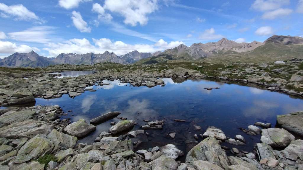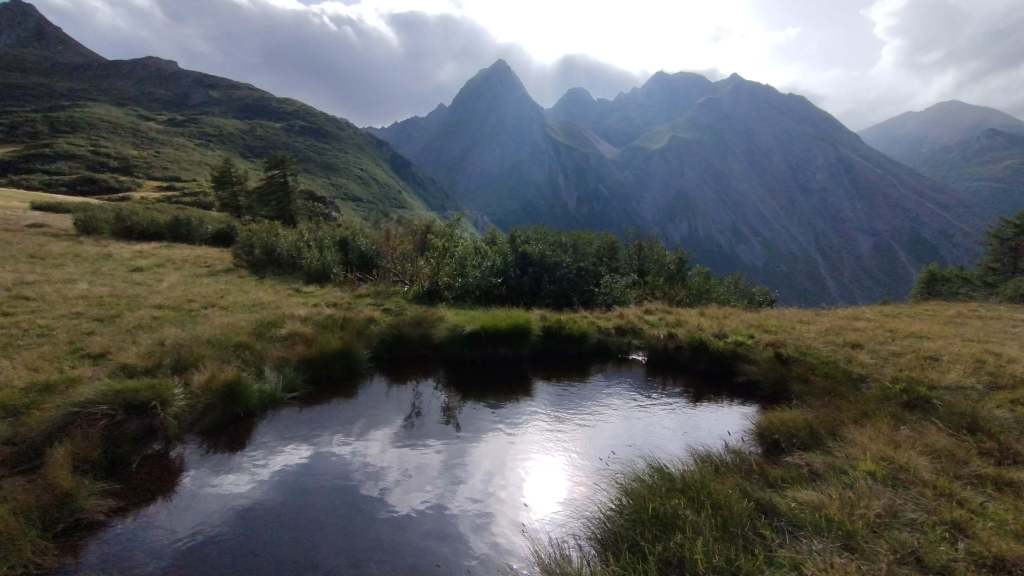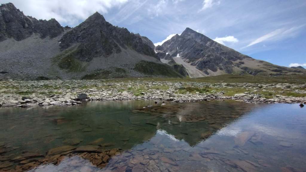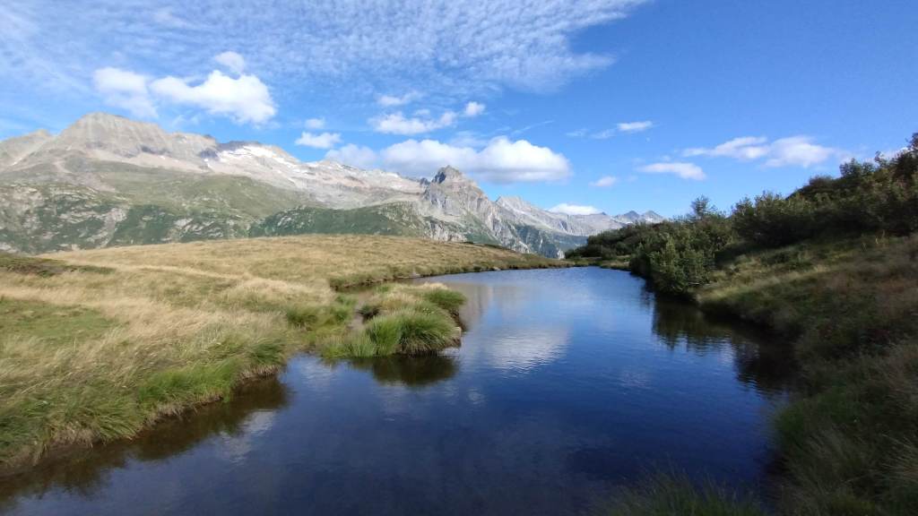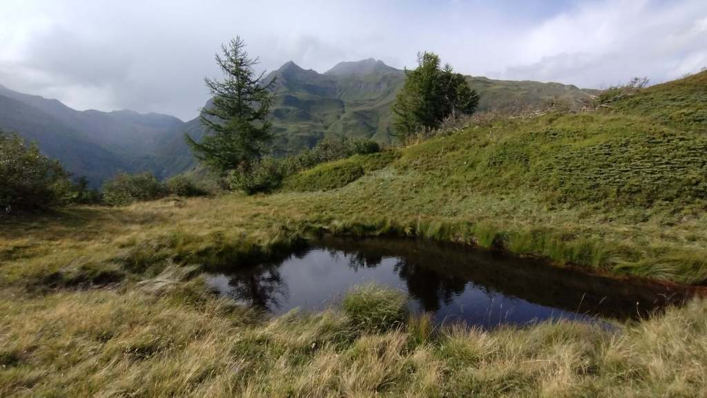 Oggi il tempo non è dei migliori, quindi organizziamo un giro che tenga conto di questo. Partiamo da Riale (1740m) e, il mattino, percorriamo il giro completo del Lago di Morasco (con pioggia e vento). Pranzo davanti alla Chiesetta di Riale e poi, il pomeriggio, ripercorriamo il giro completo del Lago di Morasco (con nuvole e sole). Saliamo all’ Alpe Furculti, ai Laghetti Furculti (2000 m) e all’ Alpe Nefelgiu (2050 m). Scendiamo poi di nuovo ai Laghetti dell’ Alpe Furculti e torniamo a Riale (1740 m).