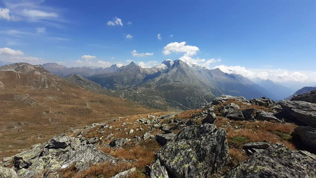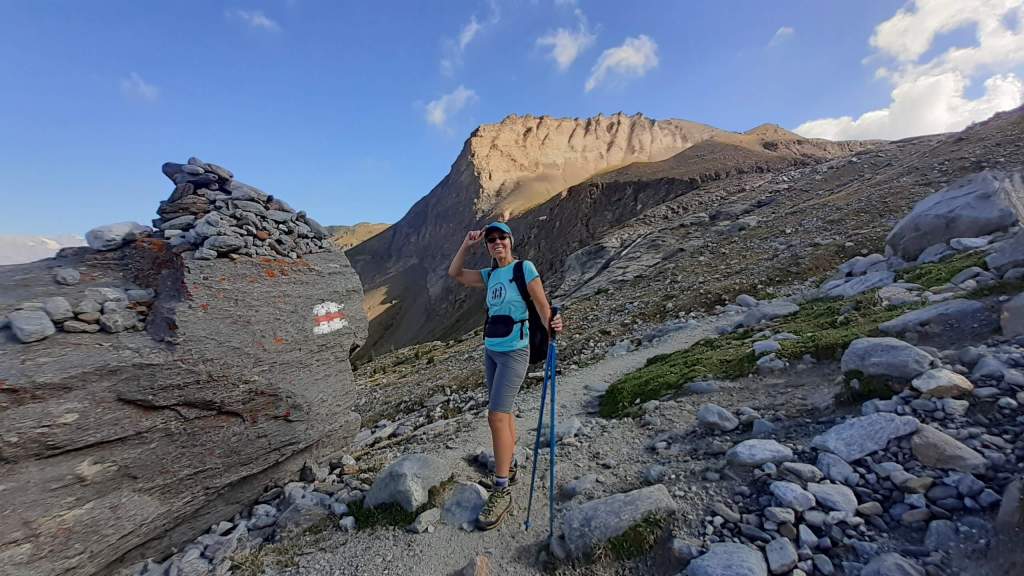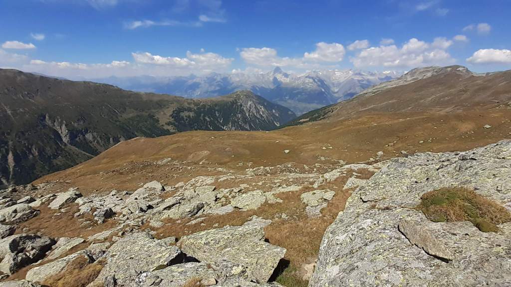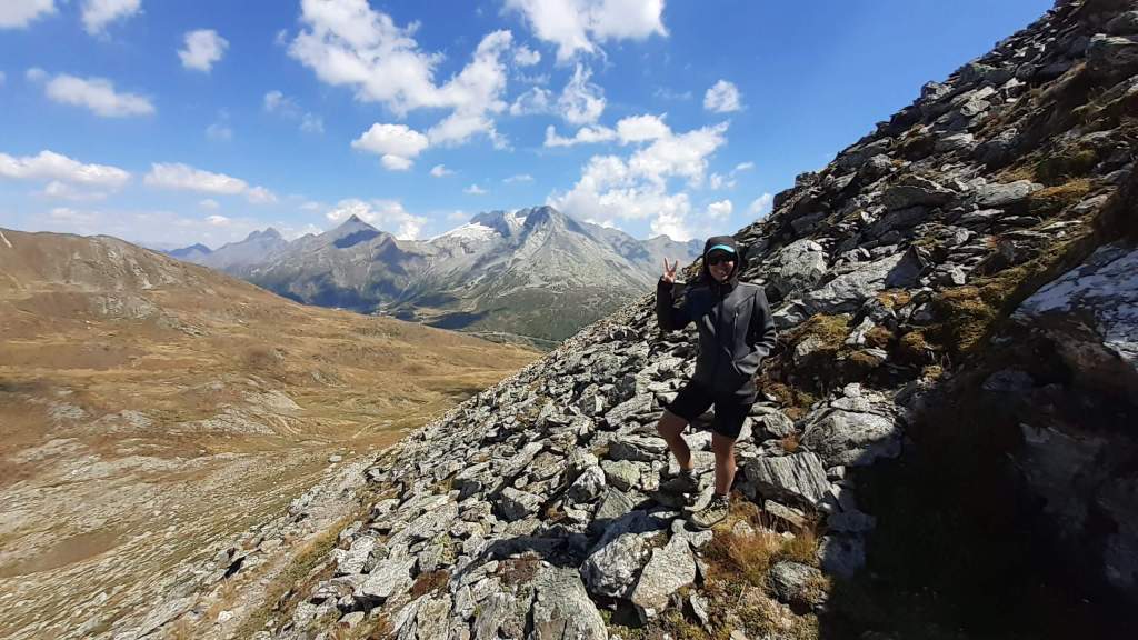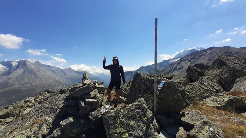 Terzo giorno in Svizzera! Organizziamo una salita che era da un po’ di tempo che volevo fare. Partiamo da Niederalp (1880 m) e, passando nei pressi di Gampisch, oltrepassiamo un ponte per poi iniziare a salire. La salita è su pendenze con ripidità costante ed eccoci ad una vallata ampia e panoramica dove il percorso “spiana”. Breve pausa e poi riprendiamo… il sentiero si fa più ripido e, in prossimità della parete di roccia e pietre, prendiamo a destra e percorriamo il traverso roccioso che ci porta al Magelicke (2440 m)… non è un semplice passo ma un “piccolo canyon” ricavato tra grosse pietre e grossi massi… bellissimo!! Il Magehorn è sulla nostra destra… cerchiamo la via di salita migliore ma non ci sono indicazioni… quindi decidiamo di salire sul versante di rocce, pietre, sassi e massi! La salita è davvero impegnativa e ripida… bisogna valutare di continuo dove passare per renderla un po’ più fattibile! Ma alla fine… eccoci sulla Vetta del Magehorn (2620 m)… spettacolare e soddisfazione alle stelle!! La vetta è un mix perfetto di pietre, rocce, sassi che sembrano sistemati ad arte! Bellissimo! Piccola pausa e poi… si scende… sperando che la discesa sia più agevole della salita!! Dopo un primo tratto pietroso… la discesa continua su pendii erbosi… ripidi sì ma pur sempre erbosi! Scendiamo piuttosto velocemente e, una volta giù, realizziamo che avremmo potuto anche salire da qui! Ma sì… è andata bene lo stesso! Cerchiamo un posticino dove mangiare il panino e poi scendiamo fino al Bistinepass (2417 m)… qualche foto e poi giù fino ad intercettare il lungo traverso sopra Gampisch che ci porta prima a Gampisch e poi a Niederalp (1880 m), dove termina questo bellissimo percorso ad anello! Giornata a tratti impegnativa ma davvero fantastica!!