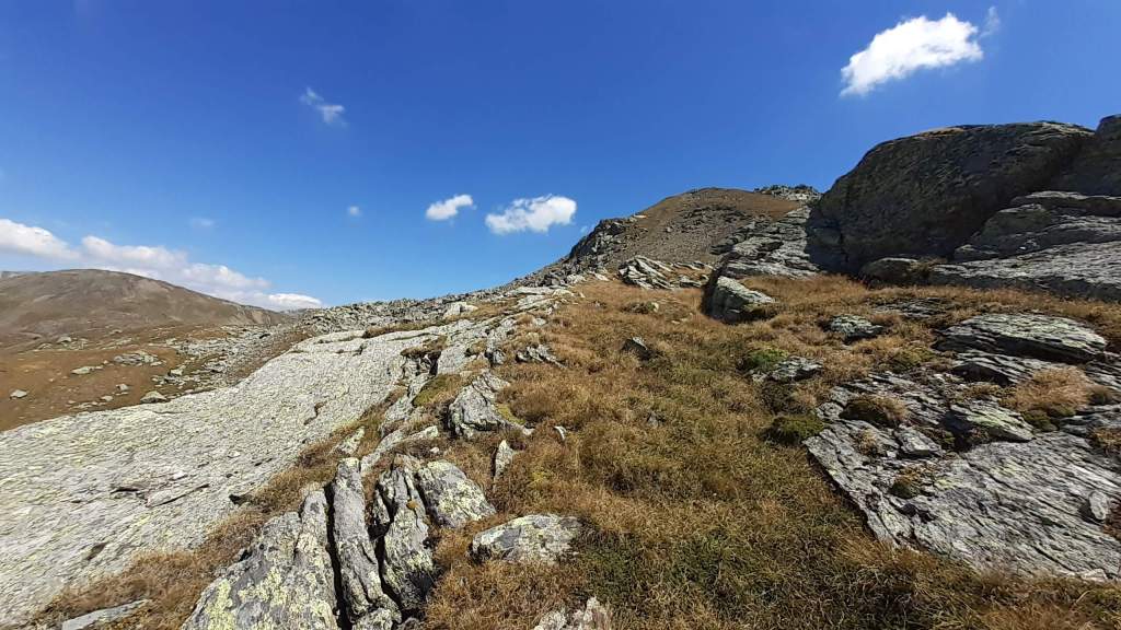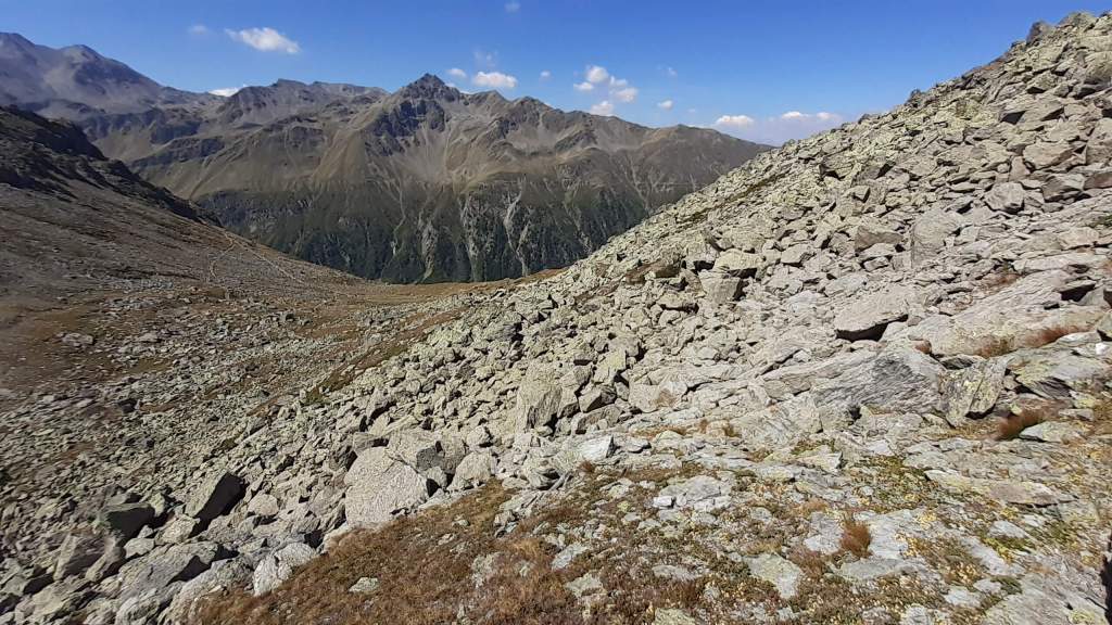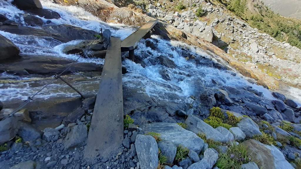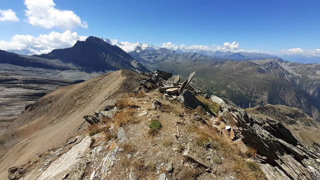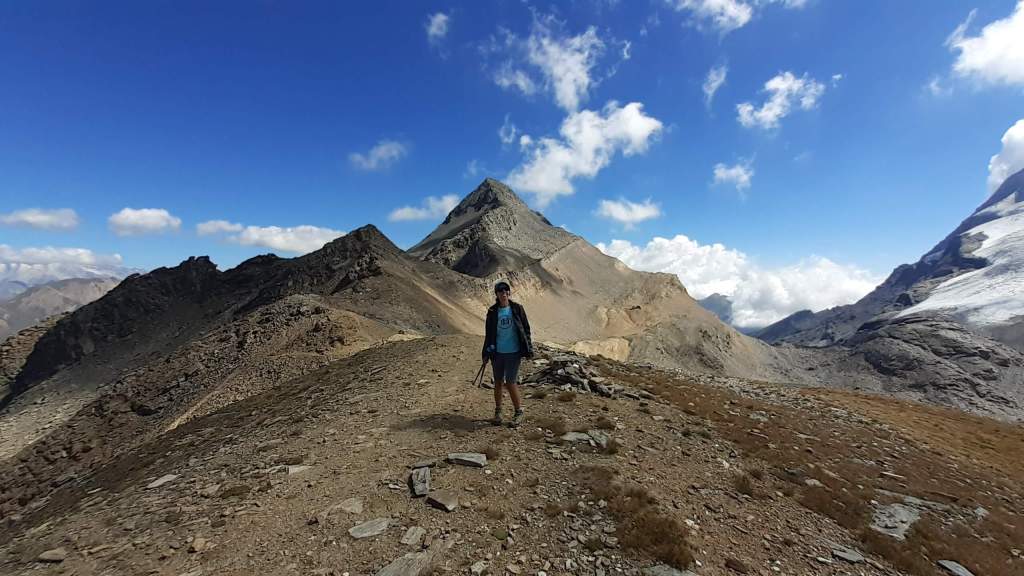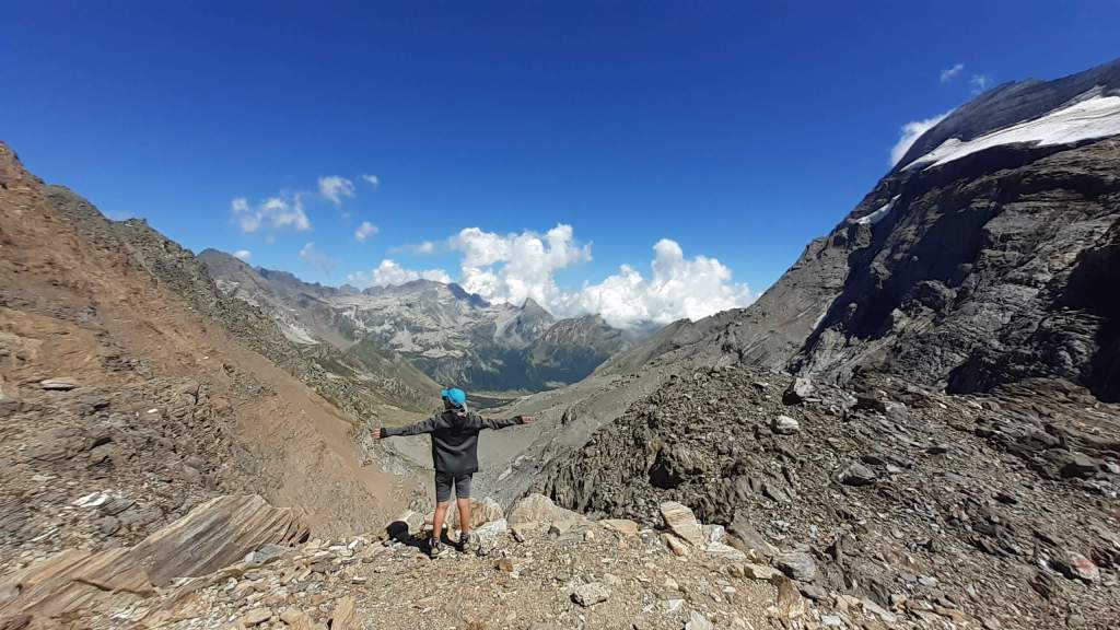 Terzo giorno in Svizzera! Organizziamo una salita che era da un po’ di tempo che volevo fare. Partiamo da Niederalp (1880 m) e, passando nei pressi di Gampisch, oltrepassiamo un ponte per poi iniziare a salire. La salita è su pendenze con ripidità costante ed eccoci ad una vallata ampia e panoramica dove il percorso “spiana”. Breve pausa e poi riprendiamo… il sentiero si fa più ripido e, in prossimità della parete di roccia e pietre, prendiamo a destra e percorriamo il traverso roccioso che ci porta al Magelicke (2440 m)… non è un semplice passo ma un “piccolo canyon” ricavato tra grosse pietre e grossi massi… bellissimo!! Il Magehorn è sulla nostra destra… cerchiamo la via di salita migliore ma non ci sono indicazioni… quindi decidiamo di salire sul versante di rocce, pietre, sassi e massi! La salita è davvero impegnativa e ripida… bisogna valutare di continuo dove passare per renderla un po’ più fattibile! Ma alla fine… eccoci sulla Vetta del Magehorn (2620 m)… spettacolare e soddisfazione alle stelle!! La vetta è un mix perfetto di pietre, rocce, sassi che sembrano sistemati ad arte! Bellissimo! Piccola pausa e poi… si scende… sperando che la discesa sia più agevole della salita!! Dopo un primo tratto pietroso… la discesa continua su pendii erbosi… ripidi sì ma pur sempre erbosi! Scendiamo piuttosto velocemente e, una volta giù, realizziamo che avremmo potuto anche salire da qui! Ma sì… è andata bene lo stesso! Cerchiamo un posticino dove mangiare il panino e poi scendiamo fino al Bistinepass (2417 m)… qualche foto e poi giù fino ad intercettare il lungo traverso sopra Gampisch che ci porta prima a Gampisch e poi a Niederalp (1880 m), dove termina questo bellissimo percorso ad anello! Giornata a tratti impegnativa ma davvero fantastica!!