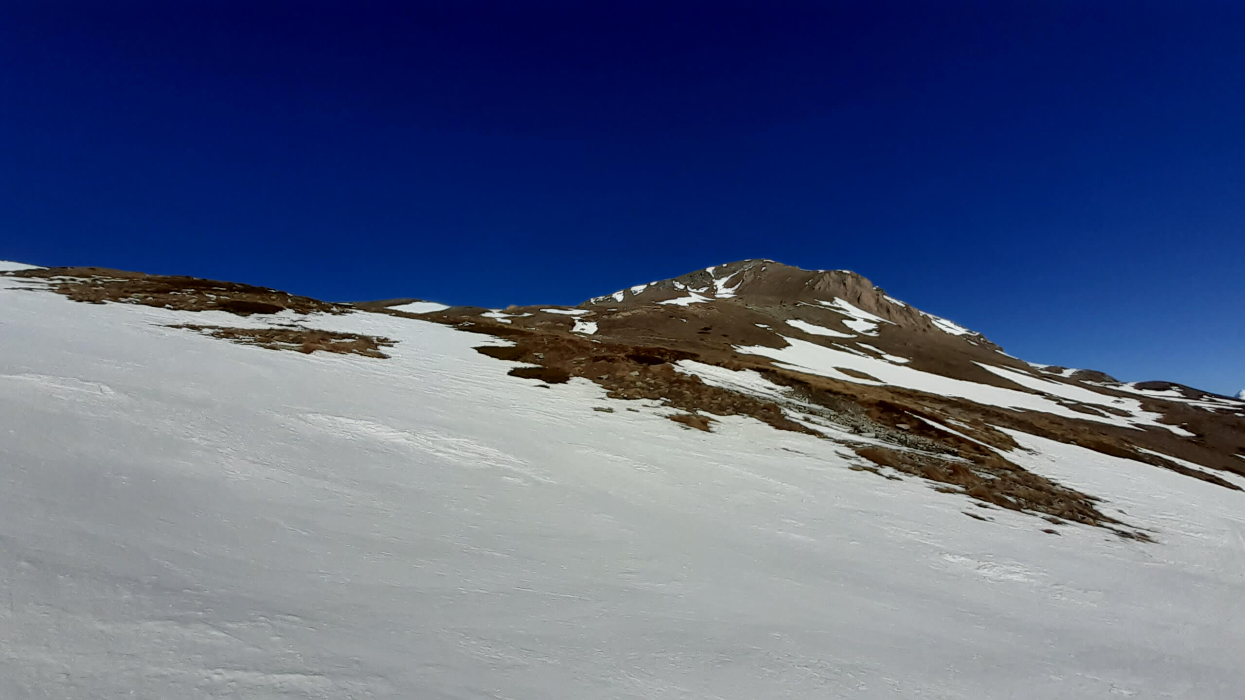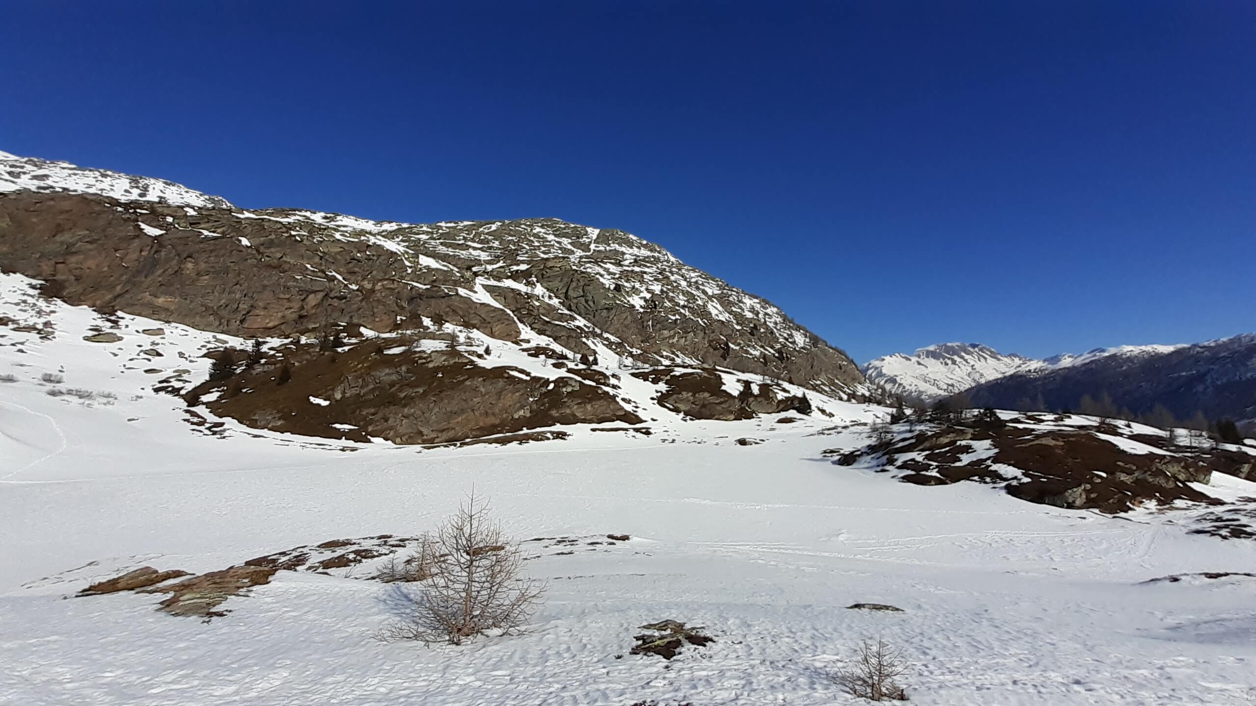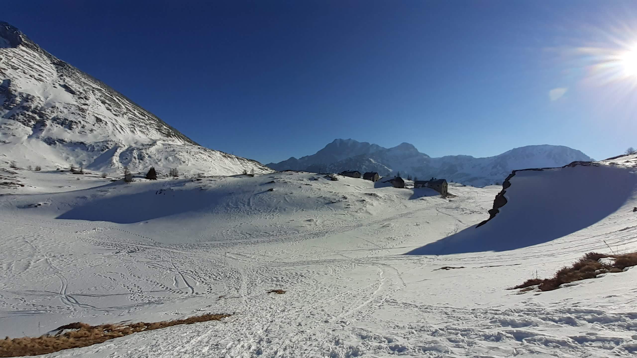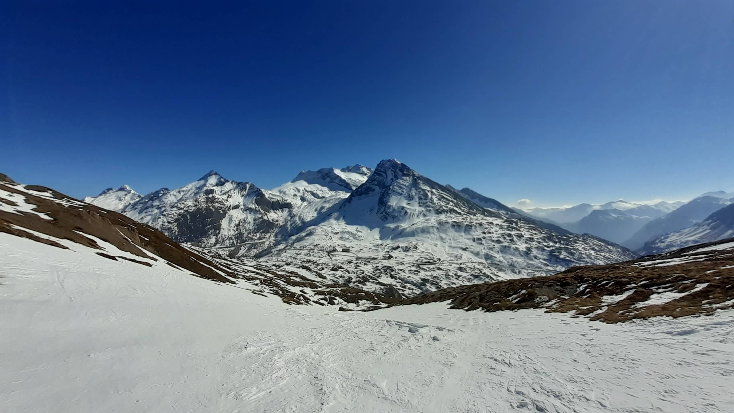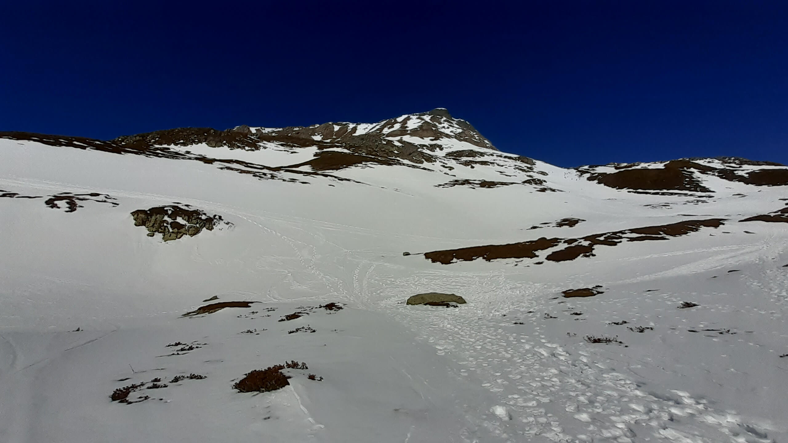 Oggi andiamo in Svizzera! Partiamo dal Passo del Sempione (2005 m)… fa freddissimo… – 8 gradi! Iniziamo a muoverci per scaldarci; la neve consente di infilare da subito le ciaspole e, dopo essere passati vicino all’ Aquila del Sempione, arriviamo a Hopsche (un piccolo nucleo di poche case) e a Hopschelsee (il suo laghetto, coperto di neve) (2040 m). Qualche foto e riprendiamo il percorso… raggiungiamo un piccolo laghetto coperto di neve, il Laghetto Effimero; rallentiamo poi in corrispondenza di 2 traversi, stretti e su ripido versante di neve ghiacciata; superati questi 2 traversi, aumentiamo il passo e raggiungiamo il versante, ampio ma sempre ripido, che ci porta a Undre Rossusee (2472 m). Sembra di essere al centro dell’ infinito… intorno a noi “svettano” stupende cime innevate, a tratti già rocciose, che costituiscono il contorno ideale di una meraviglia infinita! Proseguiamo su ripido pendio e ci fermiamo su alcune rocce poco prima della bocchetta di Usserie Nanzlicke… ai piedi dello Spitzhorli. Qui mangiamo il nostro panino, qualche foto, tanta ammirazione e poi raggiungiamo Usserie Nanzlicke (2602 m). Da qui saliamo in modo decisamente ripido tra neve, un po’ di ghiaccio e pietre/rocce che già spuntano dalla neve! Raggiungiamo il primo omino di vetta… il secondo omino di vetta, a poca distanza dal primo… ed eccoci! Siamo sulla vetta dello Spitzhorli (2737 m)… e inizia lo spettacolo dalla vetta!! L’ Arezhorn, lo Straffelgrat, il Tochuhorn e, più lontano, il Monte Leone… bellissimo e infinito panorama!! Foto su foto e poi ci prepariamo a scendere. Il ripido versante ci fa perdere subito quota e, in poco, siamo di nuovo alla bocchetta di Usserie Nanzlicke (2602 m) e, da qui, scendiamo ancora fino a Undre Rossusee (2472 m)… da qui prendiamo a sinistra e raggiungiamo anche il Piccolo Laghetto Ghiacciato (Rossusee) (si distingue pochissimo tra la bianchissima neve!). Torniamo a Undre Rossusee (2472 m) e, prima dei traversi della salita, decidiamo di variare il percorso scendendo prima lungo un canalone (la neve tiene bene) e poi un ultimo traverso ci riporta al bivio sotto il Laghetto Effimero, incontrato durante la salita. Da qui una tranquilla e semplice discesa fino a Hopsche e a Hopschelsee (il suo laghetto) (2040 m); continuiamo fino sotto l’ Aquila del Sempione e poi torniamo al Passo del Sempione (2005 m). Giornata spettacolare… salita a tratti impegnativa, che ci ha regalato un’ esperienza unica, emozioni da sogno e una soddisfazione incredibile!