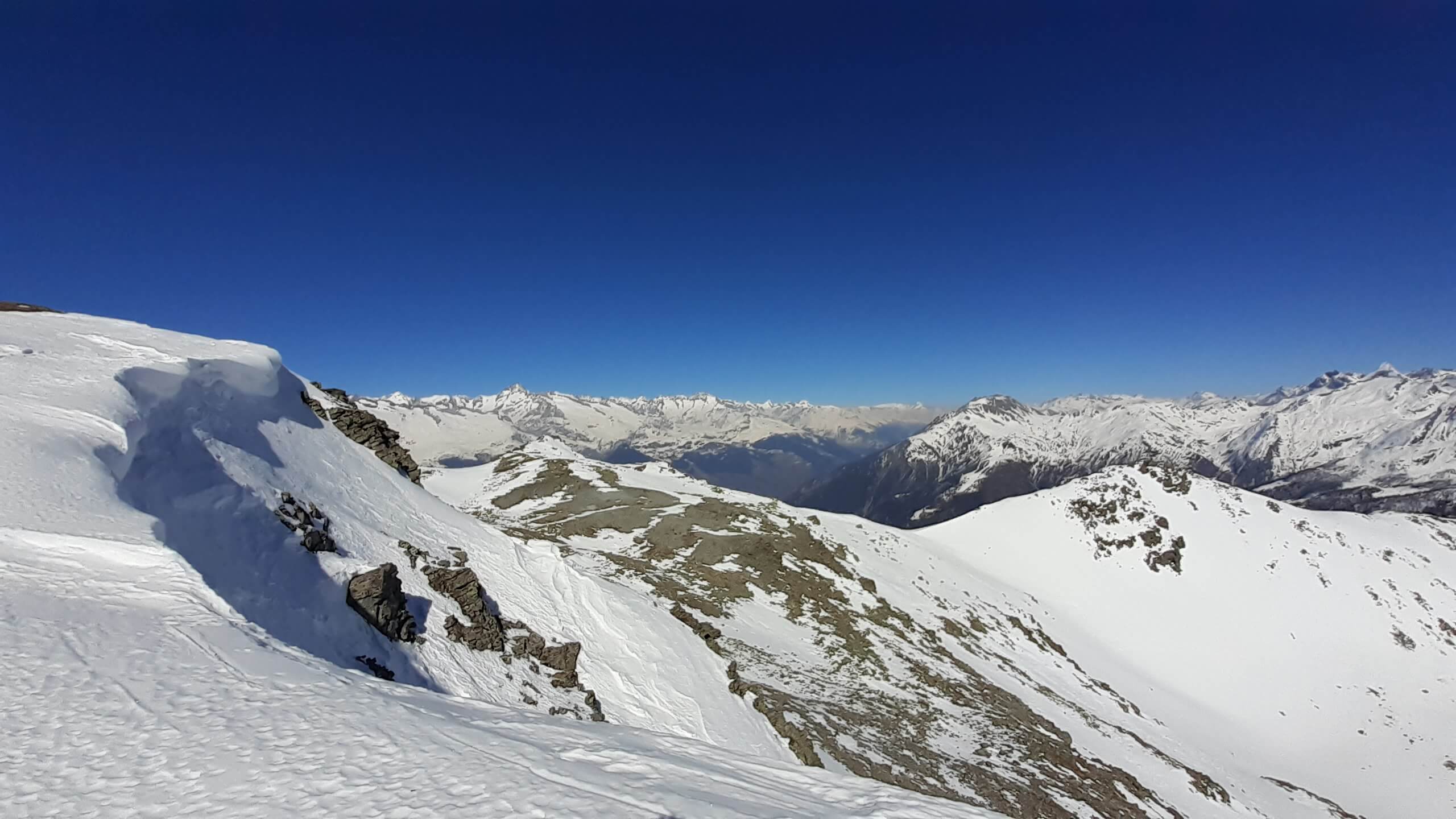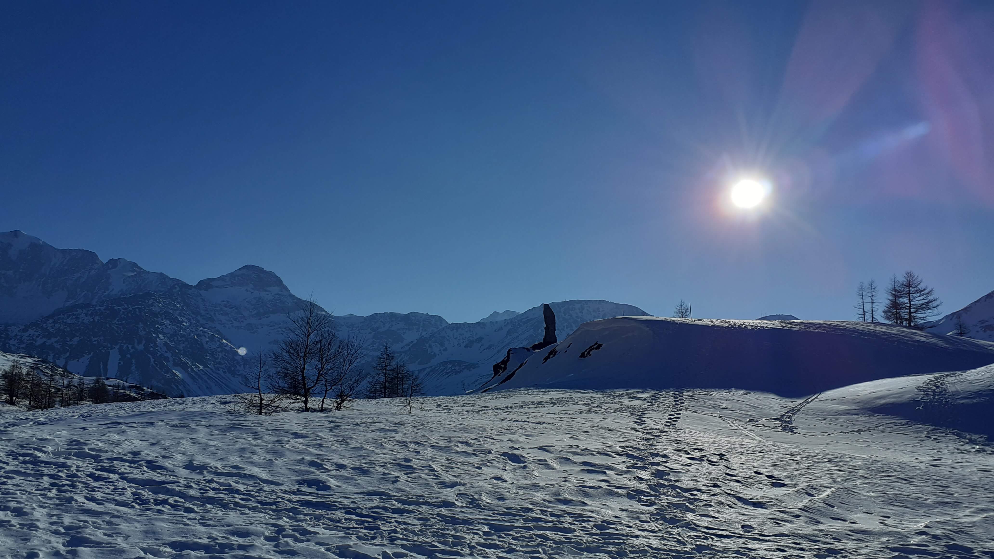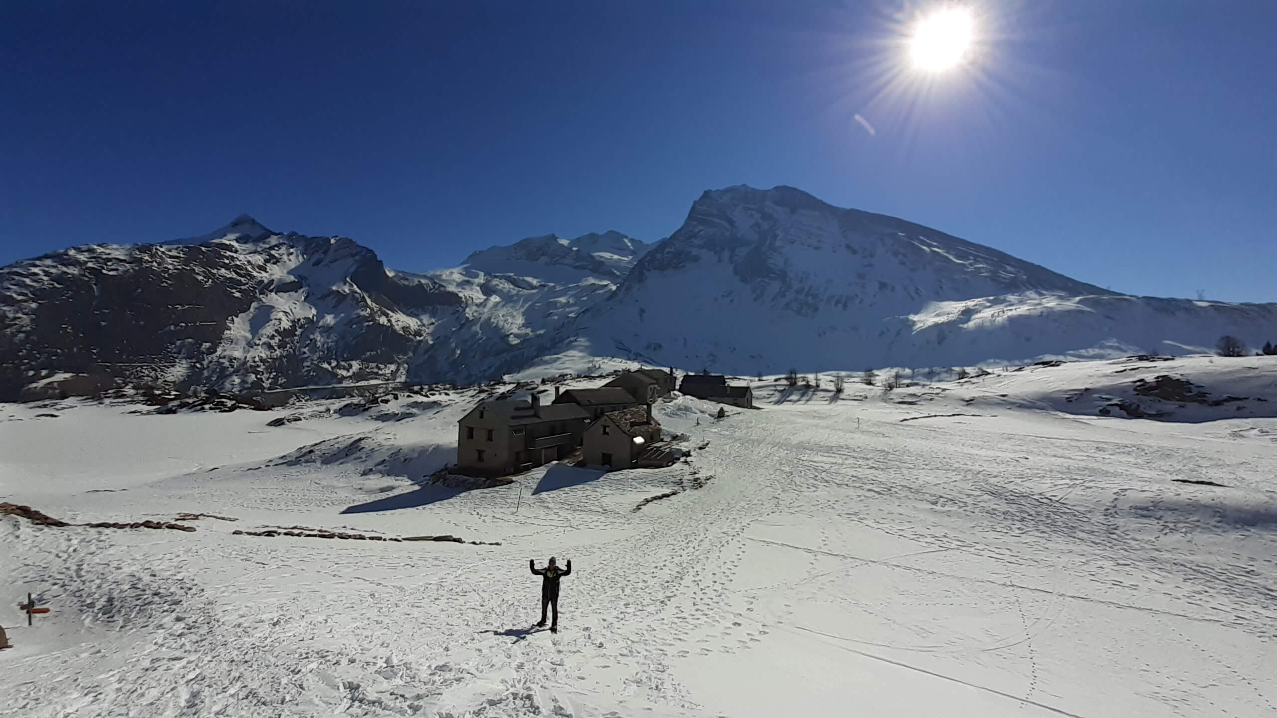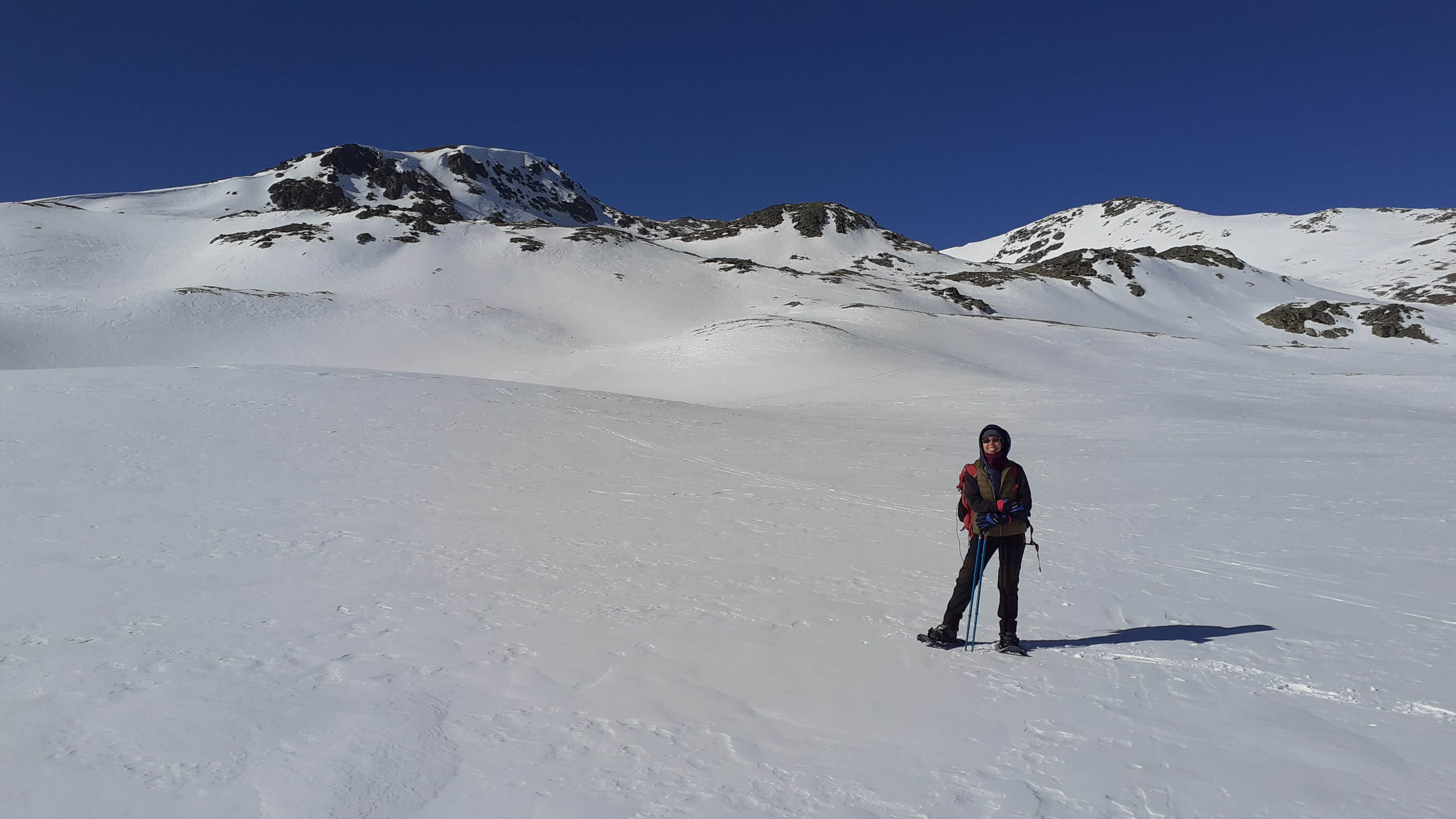 Oggi andiamo in Svizzera! Partiamo dal Passo del Sempione (2005 m)… fa freddissimo… – 8 gradi! Iniziamo a muoverci per scaldarci; la neve consente di infilare da subito le ciaspole e, dopo essere passati vicino all’ Aquila del Sempione, arriviamo a Hopsche (un piccolo nucleo di poche case) e a Hopschelsee (il suo laghetto, coperto di neve) (2040 m). Qualche foto e riprendiamo il percorso… raggiungiamo un piccolo laghetto coperto di neve, il Laghetto Effimero; rallentiamo poi in corrispondenza di 2 traversi, stretti e su ripido versante di neve ghiacciata; superati questi 2 traversi, aumentiamo il passo e raggiungiamo il versante, ampio ma sempre ripido, che ci porta a Undre Rossusee (2472 m). Sembra di essere al centro dell’ infinito… intorno a noi “svettano” stupende cime innevate, a tratti già rocciose, che costituiscono il contorno ideale di una meraviglia infinita! Proseguiamo su ripido pendio e ci fermiamo su alcune rocce poco prima della bocchetta di Usserie Nanzlicke… ai piedi dello Spitzhorli. Qui mangiamo il nostro panino, qualche foto, tanta ammirazione e poi raggiungiamo Usserie Nanzlicke (2602 m). Da qui saliamo in modo decisamente ripido tra neve, un po’ di ghiaccio e pietre/rocce che già spuntano dalla neve! Raggiungiamo il primo omino di vetta… il secondo omino di vetta, a poca distanza dal primo… ed eccoci! Siamo sulla vetta dello Spitzhorli (2737 m)… e inizia lo spettacolo dalla vetta!! L’ Arezhorn, lo Straffelgrat, il Tochuhorn e, più lontano, il Monte Leone… bellissimo e infinito panorama!! Foto su foto e poi ci prepariamo a scendere. Il ripido versante ci fa perdere subito quota e, in poco, siamo di nuovo alla bocchetta di Usserie Nanzlicke (2602 m) e, da qui, scendiamo ancora fino a Undre Rossusee (2472 m)… da qui prendiamo a sinistra e raggiungiamo anche il Piccolo Laghetto Ghiacciato (Rossusee) (si distingue pochissimo tra la bianchissima neve!). Torniamo a Undre Rossusee (2472 m) e, prima dei traversi della salita, decidiamo di variare il percorso scendendo prima lungo un canalone (la neve tiene bene) e poi un ultimo traverso ci riporta al bivio sotto il Laghetto Effimero, incontrato durante la salita. Da qui una tranquilla e semplice discesa fino a Hopsche e a Hopschelsee (il suo laghetto) (2040 m); continuiamo fino sotto l’ Aquila del Sempione e poi torniamo al Passo del Sempione (2005 m). Giornata spettacolare… salita a tratti impegnativa, che ci ha regalato un’ esperienza unica, emozioni da sogno e una soddisfazione incredibile!
