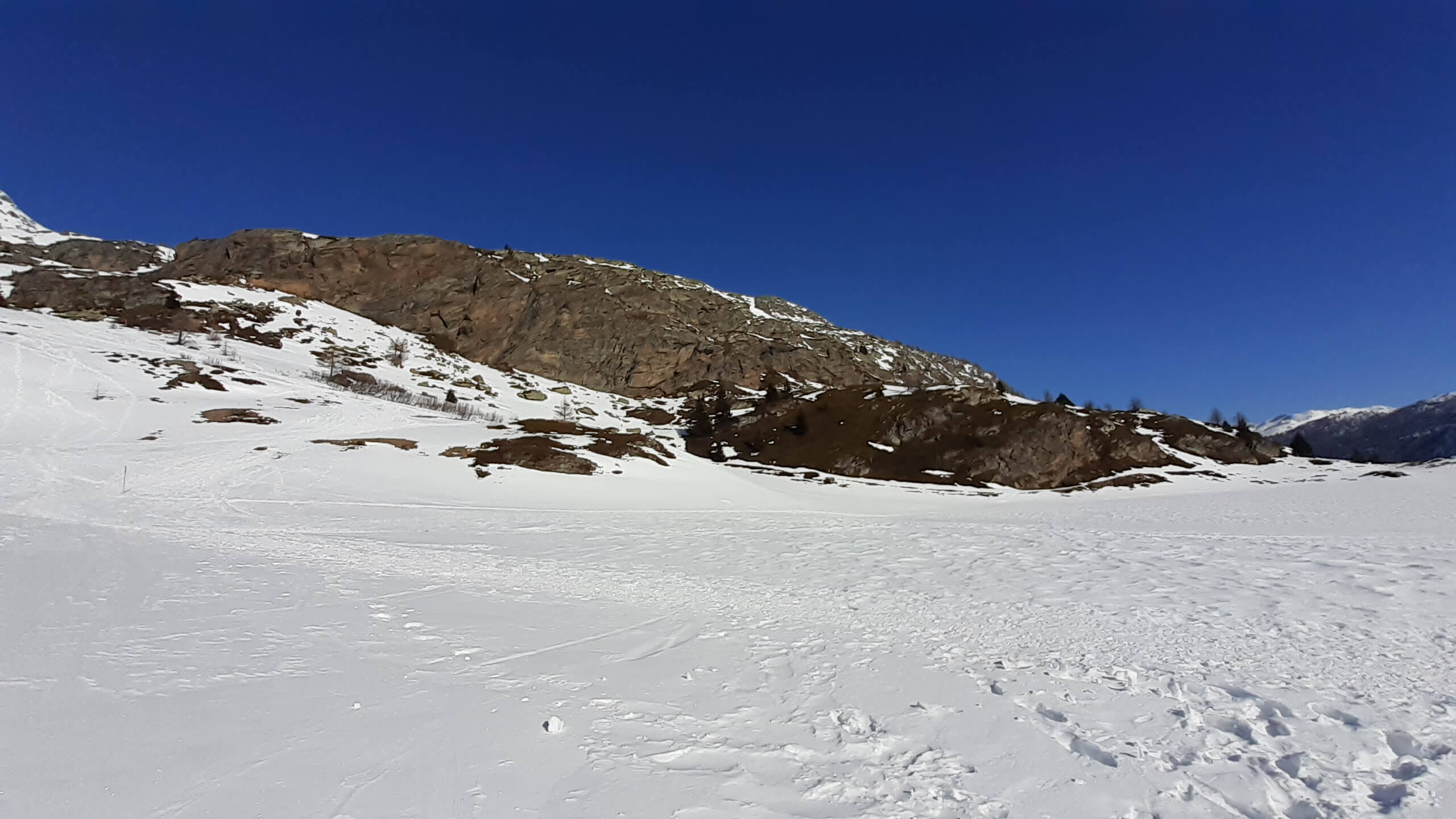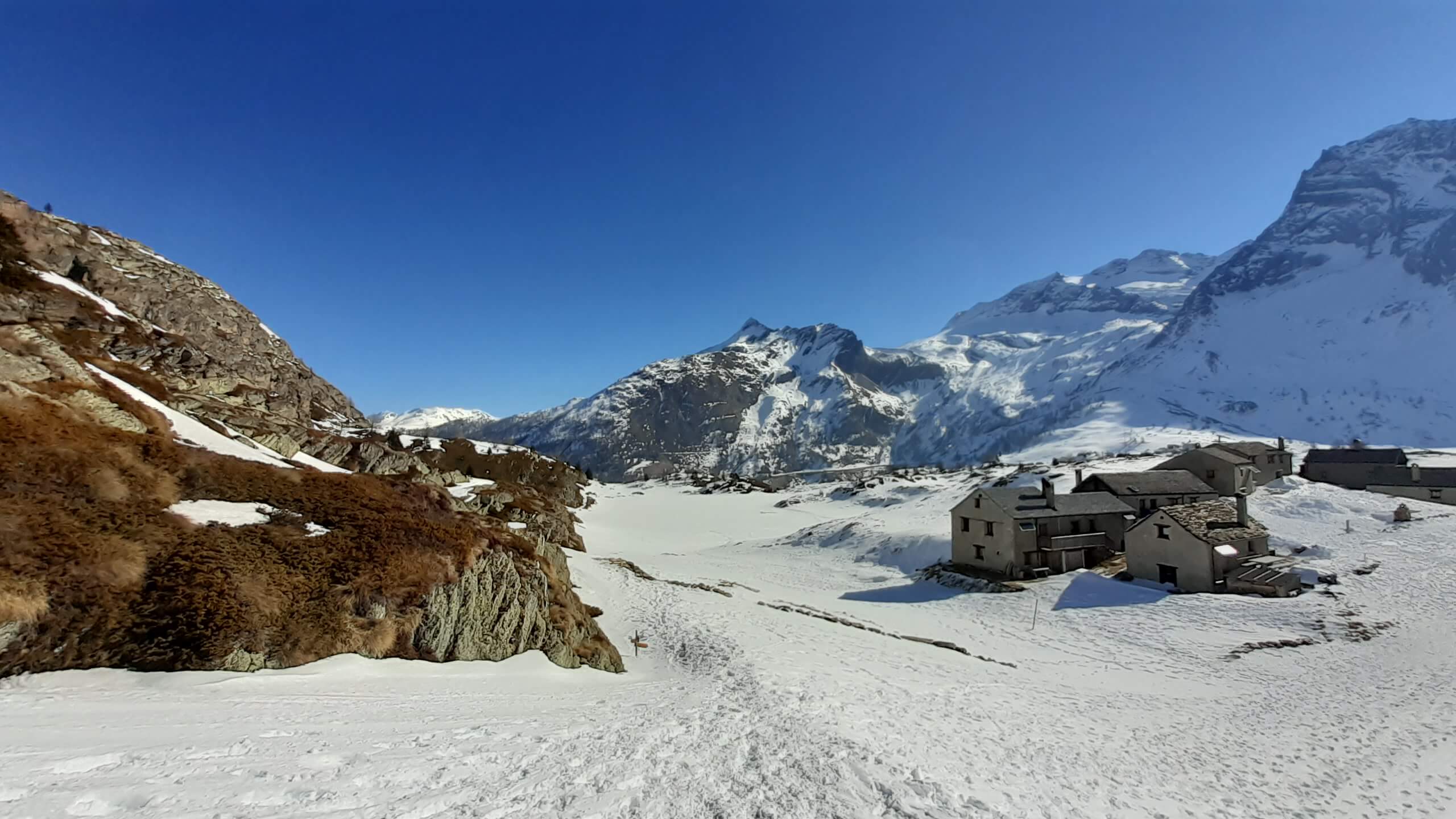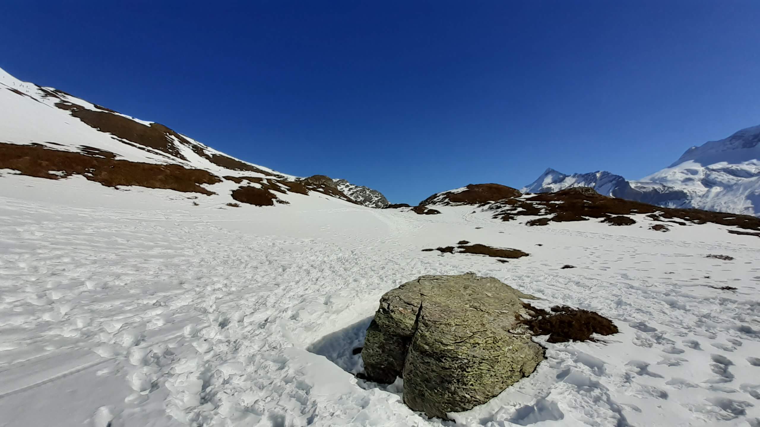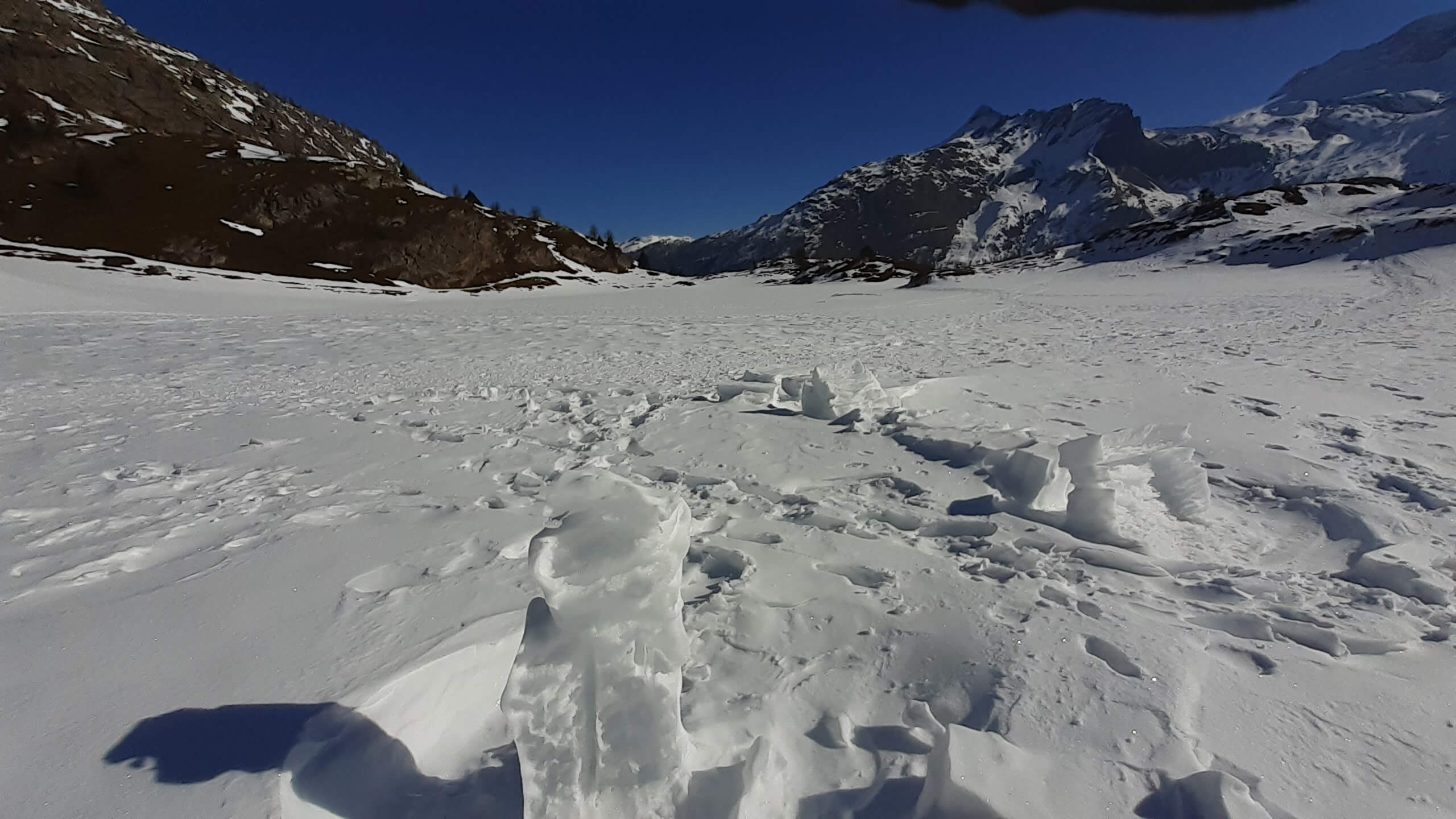 Prima tappa : salita dal Passo del Sempione, Hopsche e Laghetto di Hopsche (Hopschelsee), Laghetto Effimero coperto di neve