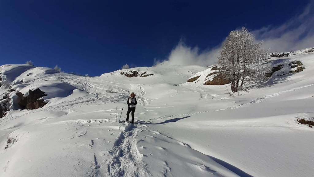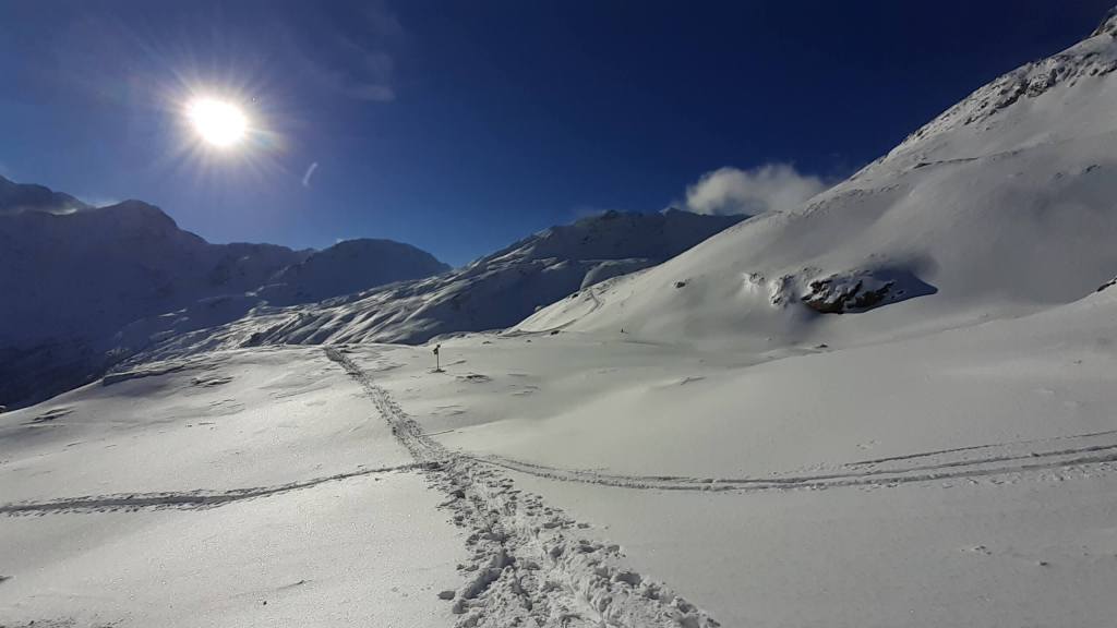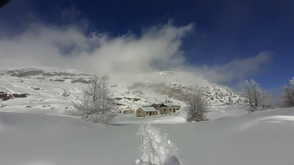 CONSIGLI come tutti i percorsi anche questo va affrontato con il giusto allenamento fisico e con la giusta attenzione. Questo percorso, di norma non particolarmente difficile, è reso piuttosto impegnativo per la neve molto abbondante, per il percorso che non è battuto ma solo tracciato, per le raffiche di vento gelido che nascondono di continuo la traccia.