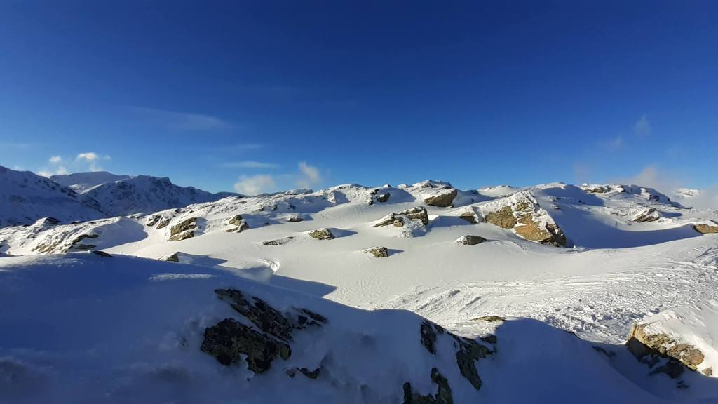 Giornata splendida… tra la neve che ha trasformato un paesaggio già bello di suo in un paesaggio dalle “sembianze artiche”. Si cammina e si sale tra il freddo, il vento gelido, le nuvole di neve che le raffiche sollevano da terra… ma si procede in un ambiente unico e da vera e propria “Patagonia”… spettacolare!