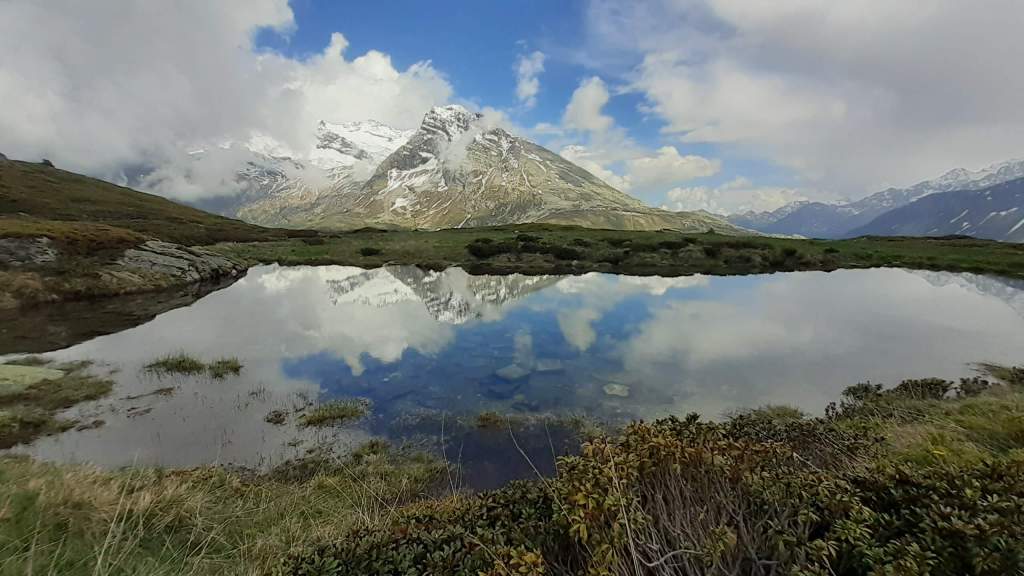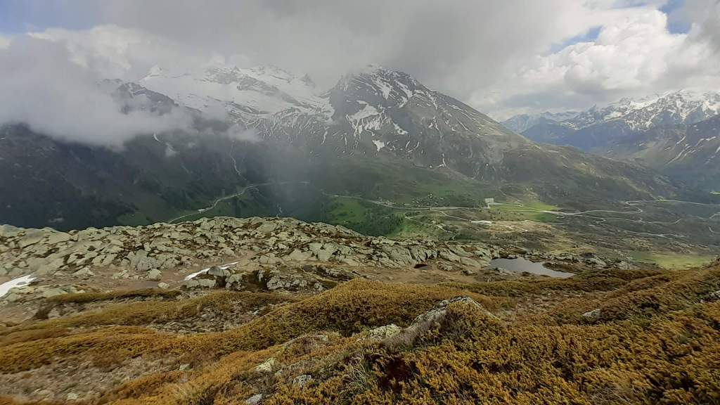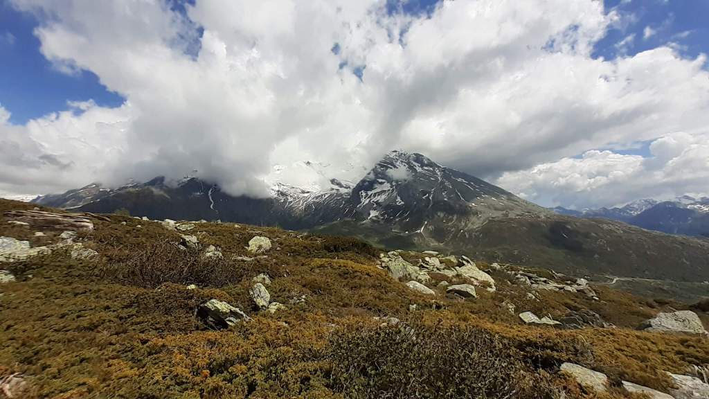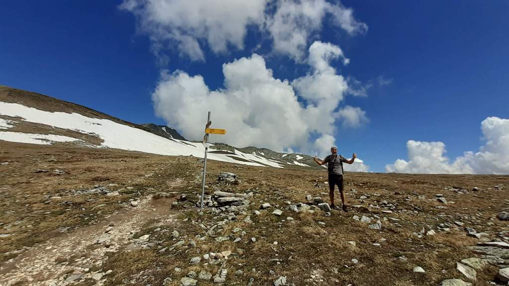 Oggi siamo al Passo del Sempione (2005 m), ma il tempo non è dei migliori. Iniziamo al mattino con una bella camminata che ci porta all’ Ospizio del Sempione e poi al Laghetto Rotelsee (2050 m). Mangiamo al coperto il panino e poi esce un po’ di sole! Partiamo di nuovo dal Passo del Sempione (2005 m) e raggiungiamo il piccolo abitato di Hopsche (2040 m) con il suo laghetto (Hopschelsee). Proseguiamo e arriviamo al Laghetto del bivio (2200 m)… sosta fotografica e poi saliamo a destra, raggiungendo la località Galmji (2370 m) e da qui un ultimo strappo, un po’ più ripido e roccioso, ci porta sulla Vetta dello Staldhorn (2460 m)… spettacolare come sempre! Il panorama è stupendo, con il Monte Leone davanti ai nostri occhi che domina l’ ambiente. Iniziano le prime goccioline di acqua, quindi attacchiamo subito la discesa, lungo lo stesso percorso della salita, con una sosta più lunga a Hopschelsee (2040 m) e poi eccoci di ritorno al Passo del Sempione (2005 m)(tutta la discesa senza pioggia, meno male!). Giornata molto bella… e il tempo, alla fine, ci ha assistito!