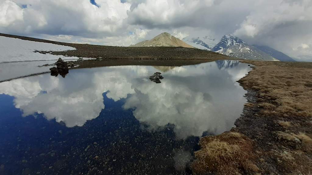 Il Tochuhorn è una vetta molto panoramica, che si innalza sullo stesso versante dello Staldhorn. E’ costituita da 2 vette : la vetta con la croce, che si raggiunge percorrendo la cresta che sale da Rossusee (rocciosa ma meno impegnativa); la vetta con l’ omino di pietra, che si raggiunge dal versante di Galmji (con alcuni passaggi alpinistici e di arrampicata… molto impegnativo e pericoloso!). Anche il tratto di cresta che collega le due vette è roccioso e presenta alcuni passaggi alpinistici e di arrampicata… molto impegnativo e pericoloso! Noi siamo saliti da Rossusee e ci siamo fermati alla prima vetta, quella con la croce. Il Laghetto Rossusee e il Laghetto Ghiacciato sono due splendidi laghetti nella Piana di Undre Rossusee.