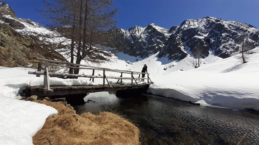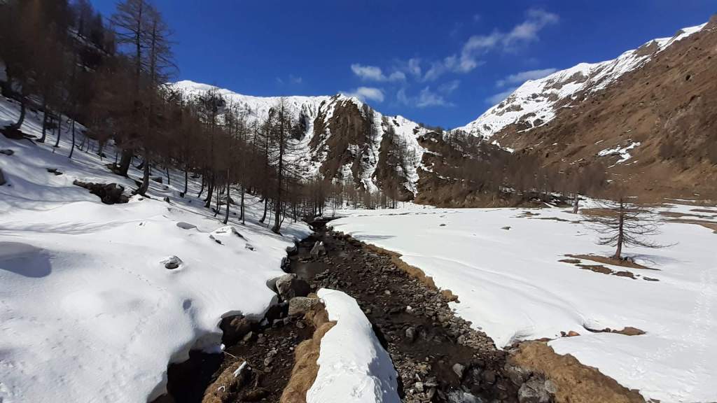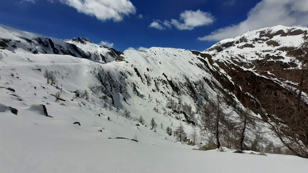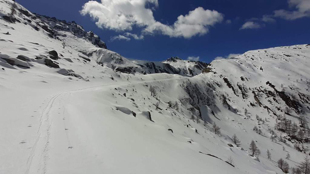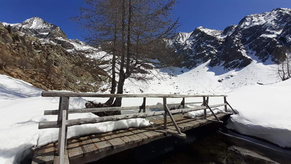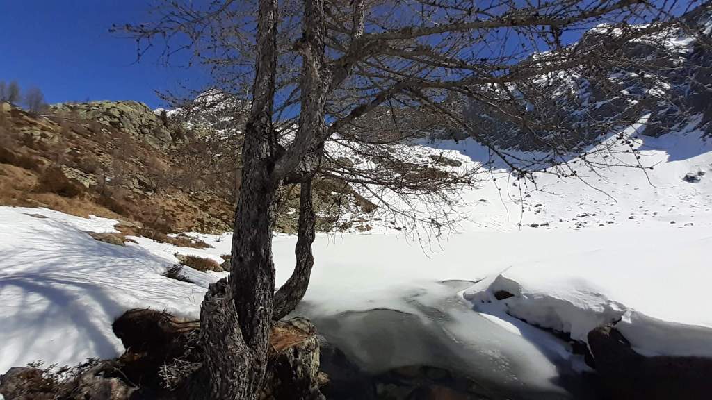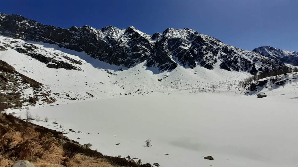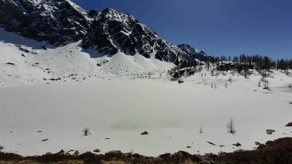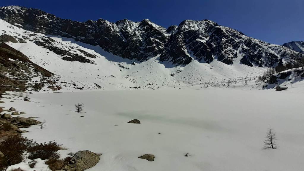 Il Lago del Sambuco è un lago artificiale originato dallo sbarramento della Diga del Sambuco. E’ piuttosto grande e ampio. I Laghi del Naret sono laghi naturali posti in una bellissima conca (noi siamo arrivati “solo” poco prima della conca a causa della neve e dei traversi esposti).