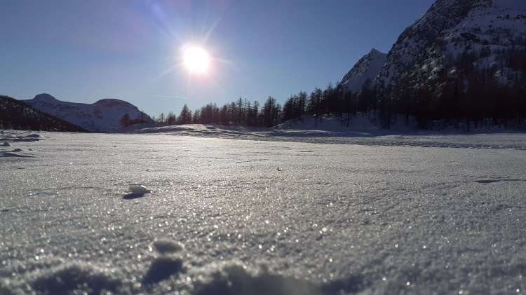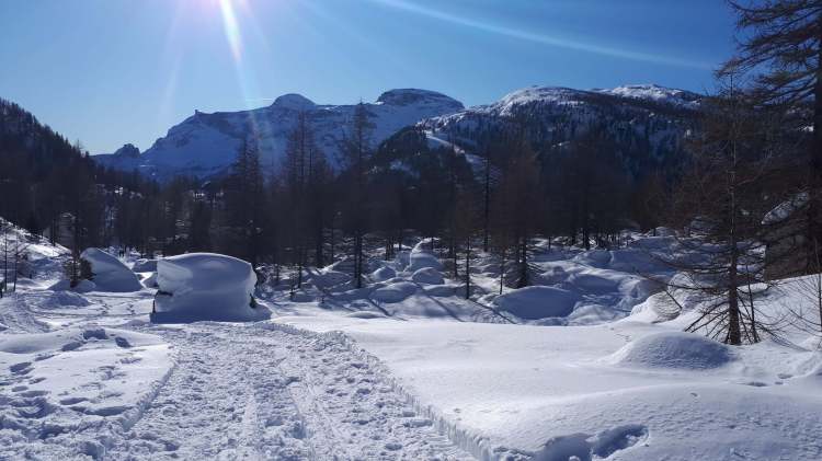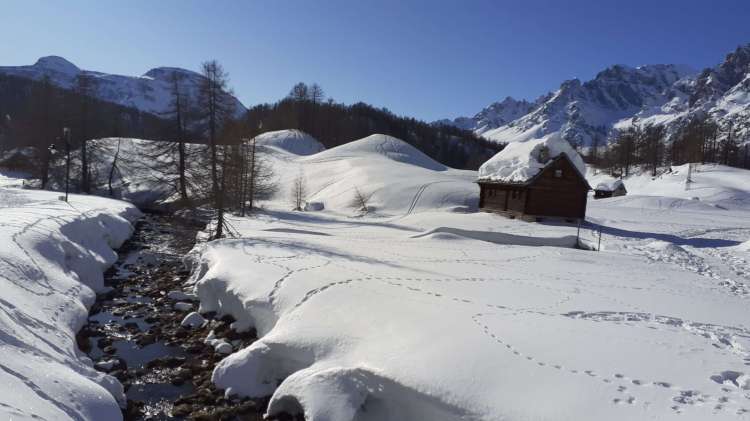 Il silenzio… amplificato dalla neve che tutto copre e interrotto solo dal suono del ruscello e delle slavine.