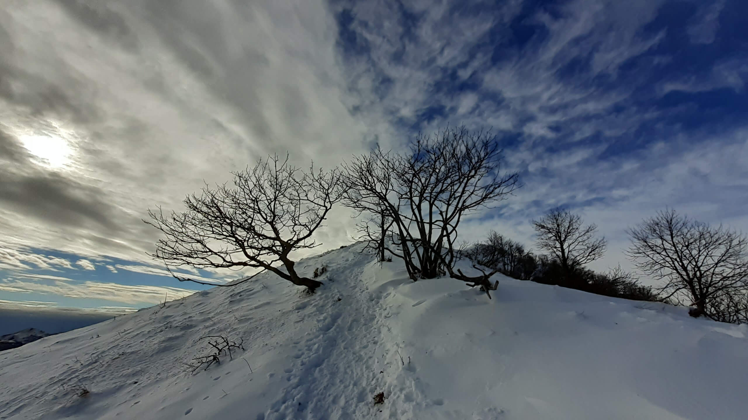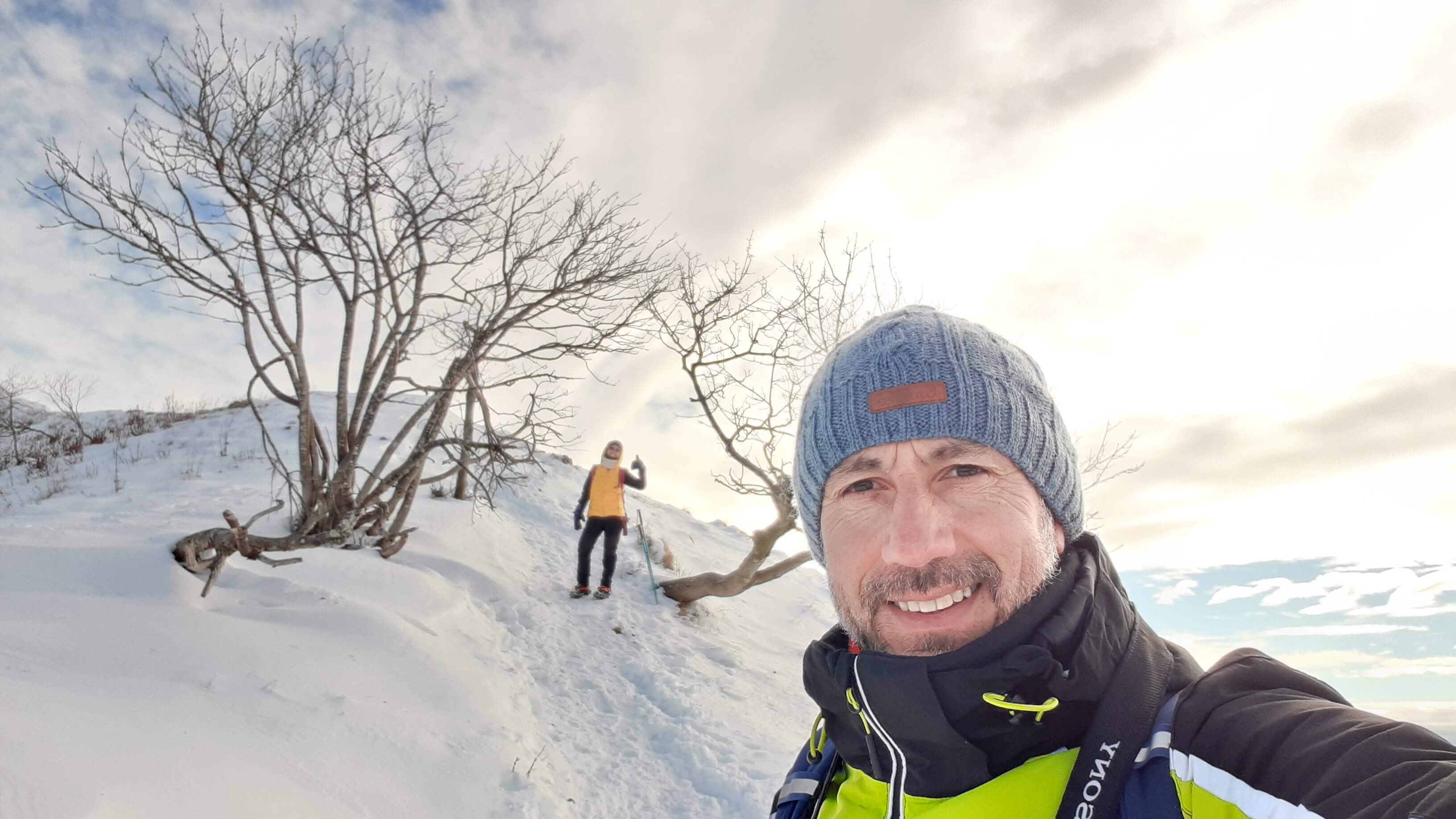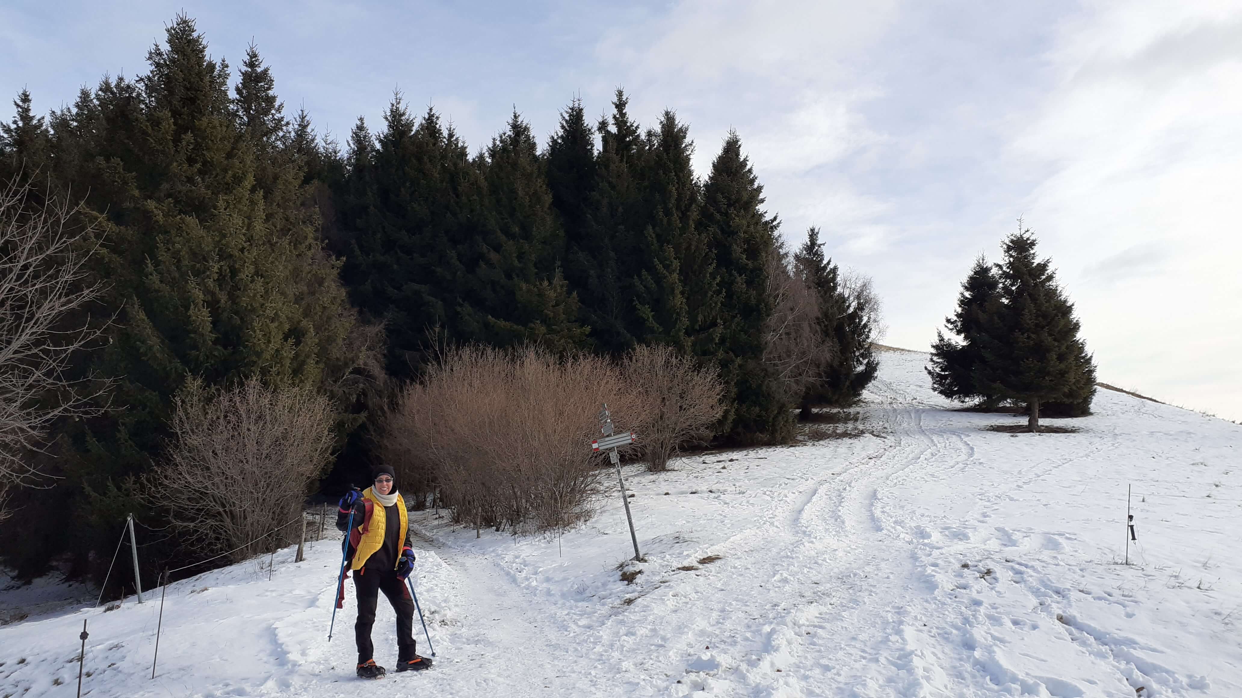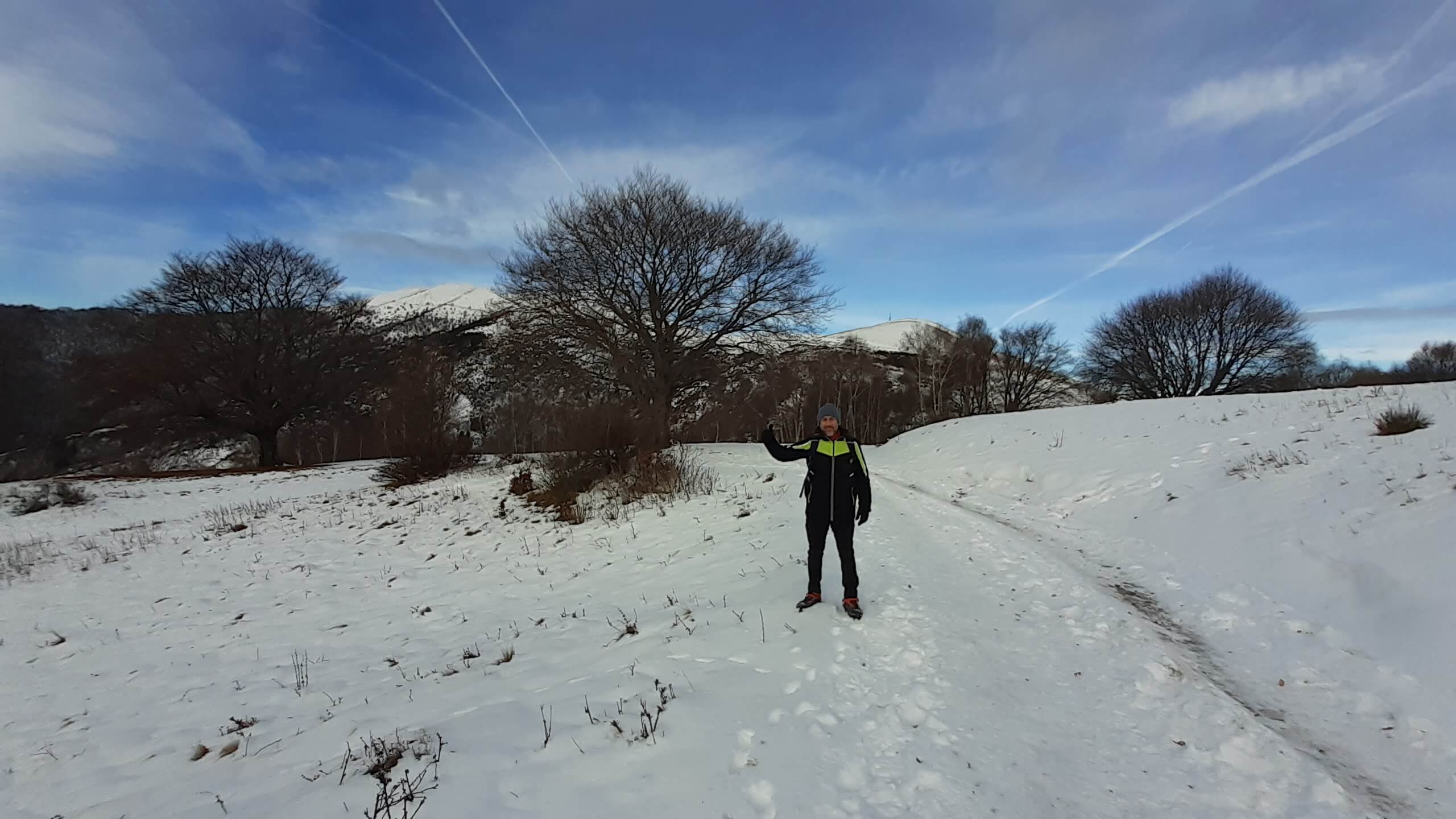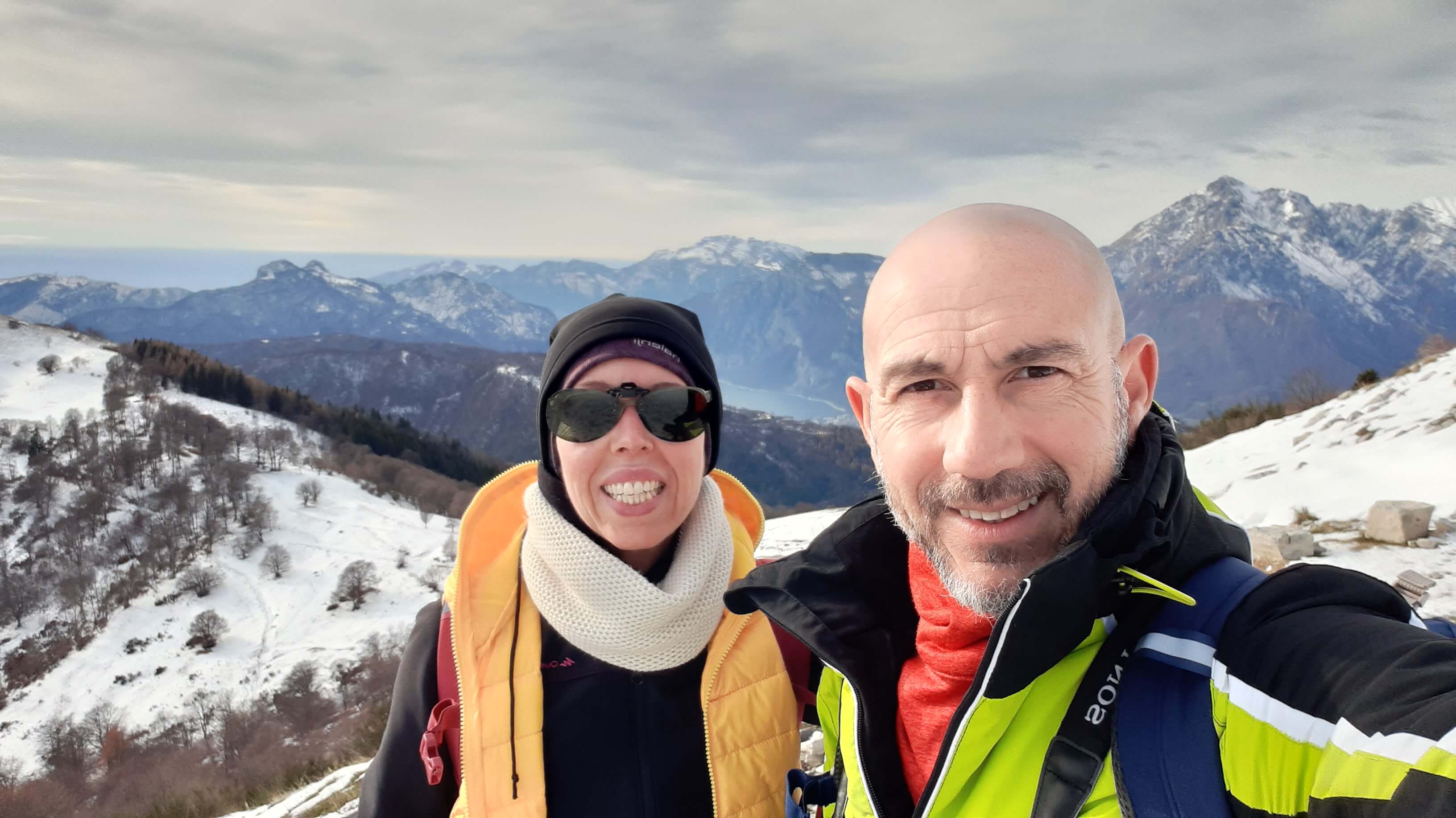 Oggi organizziamo una salita nel percorso che io preferisco all’ interno del Triangolo Lariano… la “traversata” del Monte San Primo. Partiamo dalla Colma di Sormano (1120 m), dietro il bar. Troviamo subito un lastrone di ghiaccio compatto; proseguiamo solo con gli scarponi, ma ci fermiamo quasi subito per infilare i ramponi da ghiaccio… e, così, continuiamo più agevolmente (li terremo per tutto il percorso, sia in salita che in discesa). Arriviamo alla Colma del Bosco (1230 m) e poi alla Bocchetta di Spessola (1235 m). Ci fermiamo per scattare parecchie foto lungo il percorso… il panorama è stupendo e spazia dappertutto! La neve in alcuni tratti è morbida, in altri è ghiacciata e scivolosa… con i ramponi procediamo abbastanza tranquillamente. Raggiungiamo la Bocchetta di Terrabiotta (1430 m) e da qui è possibile salire direttamente sulla Cresta Est del Monte San Primo (“dorsale per cresta) o prendere a sinistra e seguire la “dorsale bassa”. Decidiamo di salire sulla Cresta Est, molto più panoramica anche se più impegnativa. Arriviamo alla Cima del Costone (1610 m) e cerchiamo un posticino, uscendo un po’ dal percorso, per mangiare il nostro panino (senza soffermarci troppo… fa davvero freddo!!) Proseguiamo e arriviamo alla vetta del Monte San Primo, con la sua croce (1680 m). Ammiro tutto il bellissimo panorama, anche portandolo all’ interno della fotocamera del mio cellulare. Non ci fermiamo tanto… il cielo si è coperto di nubi grigie ed è meglio iniziare subito la discesa. Ripercorriamo la Cresta Est (“dorsale per cresta”), passando per la Cima del Costone (1610 m), arriviamo alla Bocchetta di Terrabiotta (1430 m), alla Bocchetta di Spessola (1235 m) e, infine, torniamo alla Colma del Bosco (1230 m). Alla fine del percorso, eccoci di nuovo alla Colma di Sormano (1120 m) e alla nostra macchina. Giornata stupenda… e abbiamo rimesso i ramponi che erano fermi dall’ inverno scorso!