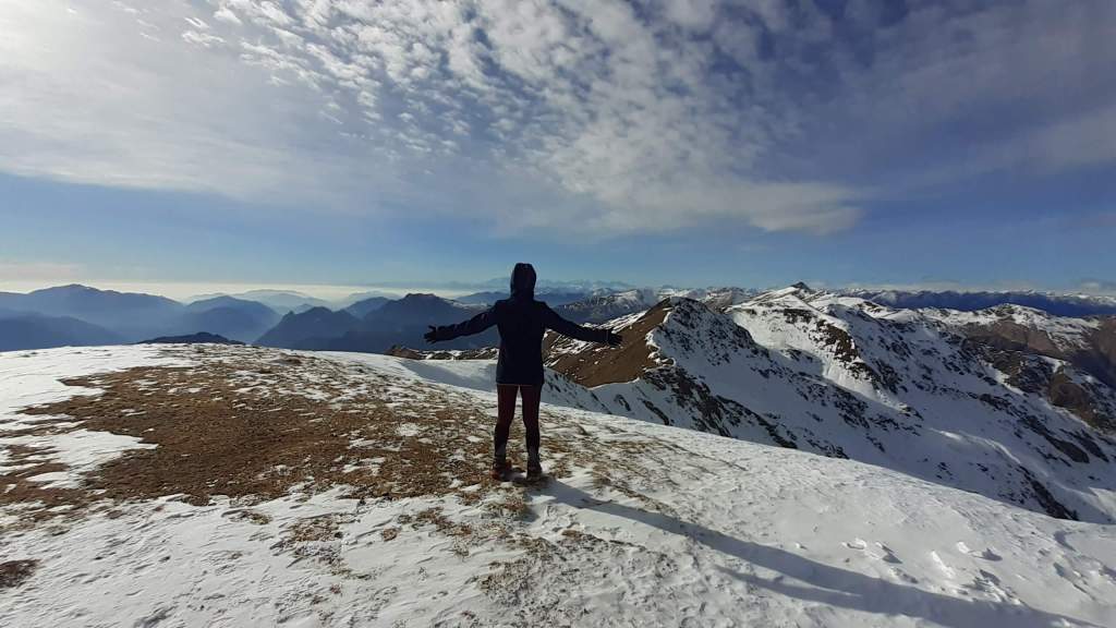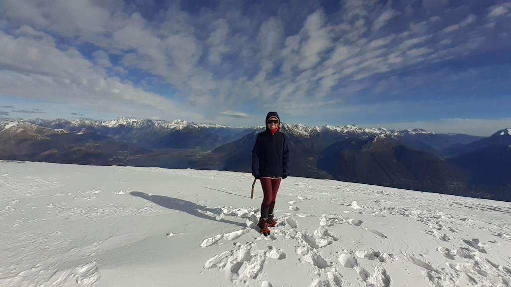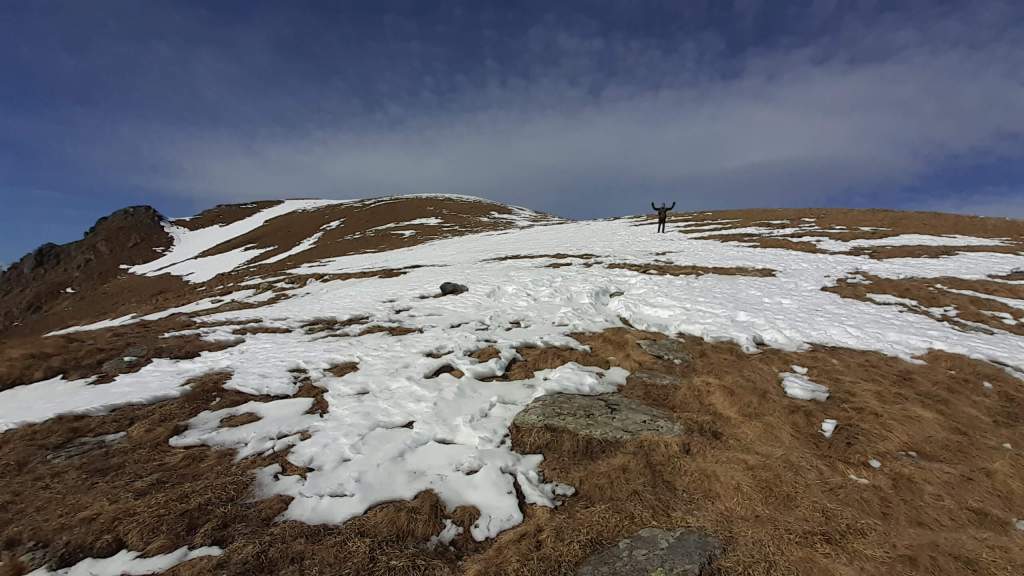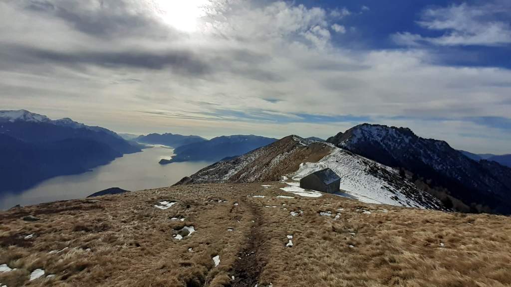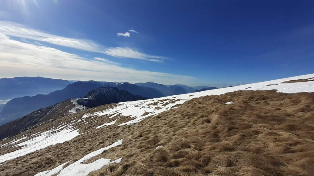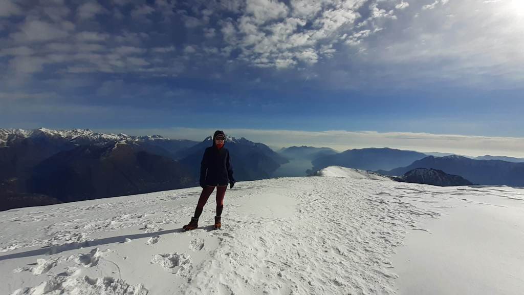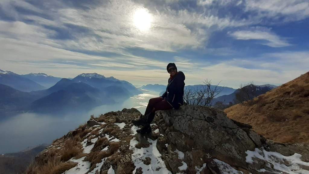Oggi siamo nello stupendo scenario del Lago di Como. Partiamo da Breglia (730 m), sopra la cittadina di Menaggio. Saliamo fino a Monti di Breglia (990 m) e da qui seguiamo il percorso che ci porta ad un bivio : a sinistra il percorso porta al Rifugio Menaggio, a destra verso Sant’ Amate. Noi prendiamo a destra e, su percorso con ripidità costante, arriviamo alla piccola cappella di Sant’ Amate (1623 m). (P.S. l’ ultimo tratto, piuttosto esposto, presenta neve, ghiaccio e fango… quindi la difficoltà qui aumenta parecchio). Piccola pausa e poi saliamo al di là di Sant’ Amate. Il percorso è piuttosto lungo e raggiunge prima un’ anticima, in parte rocciosa, e poi la Vetta del Monte Bregagnino (1905 m). Qui inizia a soffiare un vento freddo con forti raffiche… cerchiamo un posticino dove mangiare il panino e poi proseguiamo. La neve, fino ad ora poca e aggirabile, da adesso diventa più presente, ma si sale anche solo con i ramponcini ed eccoci, dopo un’ altra piccola cima rocciosa, anche alla Vetta del Monte Bregagno (2107 m)! Il panorama stupendo che ci ha accompagnato per tutta la salita adesso si amplia e diventa spettacolare! Da qui si possono ammirare laghi e montagne… da non sapere dove guardare! Ammirazione… foto… e poi “attacchiamo” la discesa che ci porta di nuovo alla Vetta del Monte Bregagnino (1905 m), a Sant’ Amate (1623 m), a Monti di Breglia (990 m) e, infine, a Breglia (730 m). Giornata splendida, percorso spettacolare e panorami che sfiorano davvero l’ infinito!