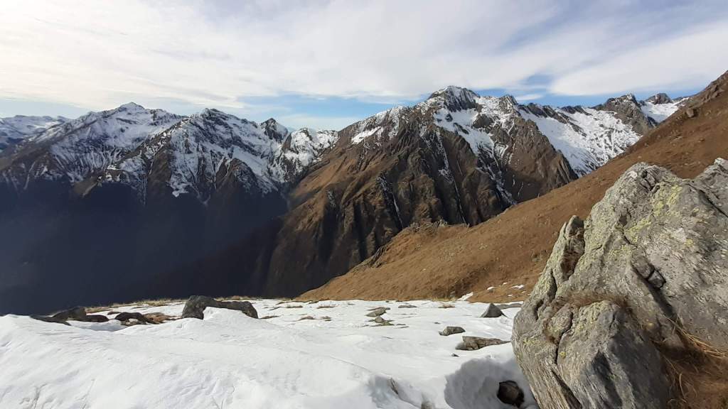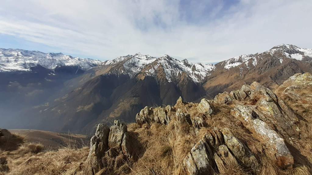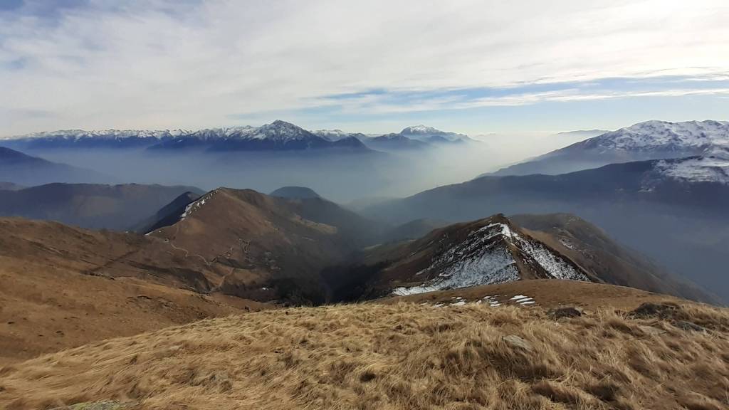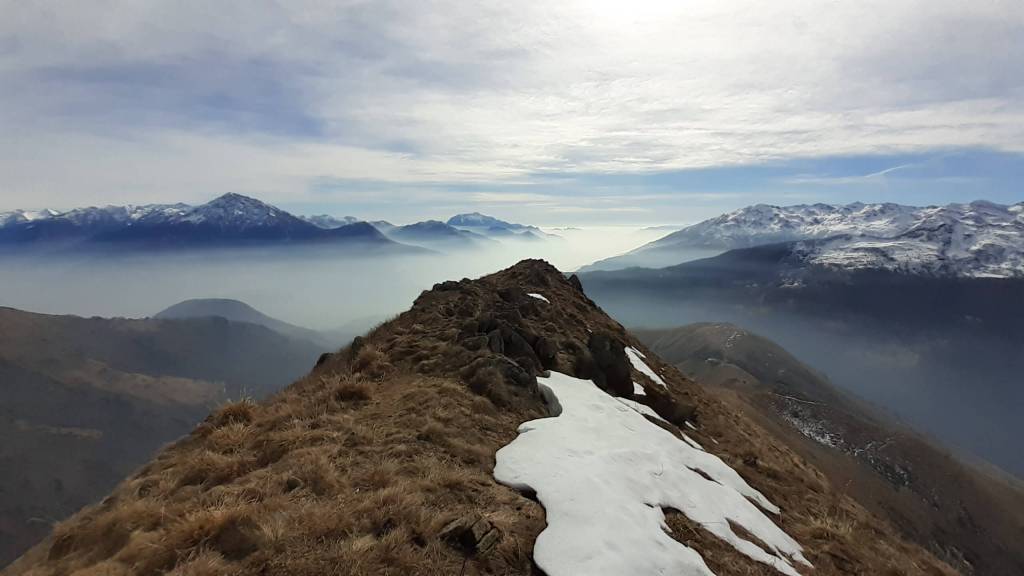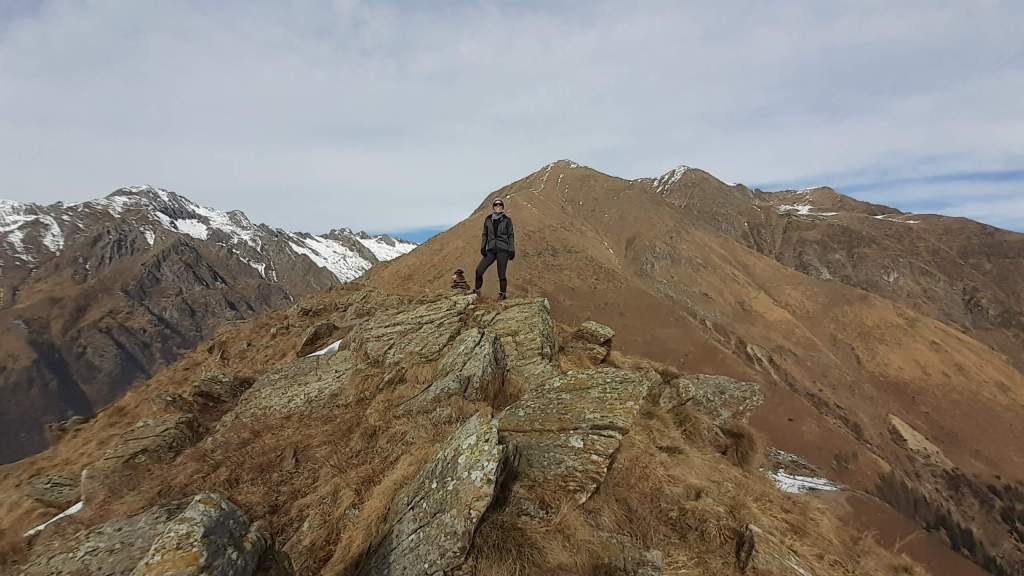 Oggi siamo a Dosso del Liro (670 m) e… si parte! Senza difficoltà particolari arriviamo a Pra’ Naro, un piccolo alpeggio e da qui saliamo ancora, su alcuni tratti disconnessi e con neve in scioglimento e un po’ esposti, fino alla bocchetta La Lissa (1340 m)… piccola pausa e poi si riprende verso l’ Alpe Piaghedo e il Monte Piaghedo (1450 m). Il panorama è già stupendo… foto su foto e poi proseguiamo. Qualche piccolo strappo più ripido e più roccioso ed eccoci alla Cimetta dell’ Acqua (1690 m)… un bellissimo tratto in cresta rocciosa molto panoramico! Qui ci fermiamo per la pausa panino e poi oltrepassiamo la cresta, un piccolo tratto più in piano poi inizia la salita ripida, molto ripida, spesso su paglioni scivolosi, verso il Dosso Bello (1980 m). Qui il panorama è ancora più immenso… sul Lago di Como e su tutte le montagne intorno! Bellissimo! Pausa e poi “attacchiamo” la discesa… lungo lo stesso percorso della salita… Cimetta dell’ Acqua (1690 m), Monte Piaghedo (1450 m), Alpe Piaghedo, La Lissa (1350 m), Pra’ Naro e poi giù fino a tornare a Dosso del Liro (670 m). Giornata molto impegnativa ma decisamente molto soddisfacente!