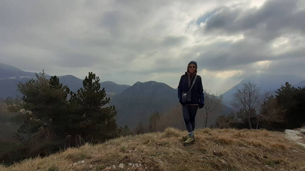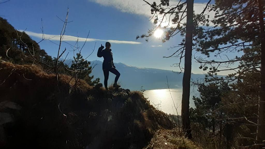 Secondo giorno del weekend… siamo a Tignale (frazione Oldesio) (490 m) e da qui partiamo per portarci nella parte più alta di Tignale dove parte il percorso che, con un alterarsi tra tratti ampi e comodi e tratti più stretti e ripidi, ci porta al primo e bellissimo belvedere… piccola pausa e poi riprendiamo il cammino fino al Rifugio Cima Piemp (1160 m). (P.S. lungo il percorso ci sono anche delle grotte scavate nella roccia). Al rifugio mangiamo il panino con una strepitosa vista sul Lago di Garda. Poi proseguiamo verso il Dosso dell’ Asino e la Cima Traval ma rimaniamo a qualche decina di metri dalla loro vetta perché non esiste un sentiero e sarebbe solo un “ravanage” tra foglie e terra per raggiungerle. Torniamo invece nei pressi del rifugio e saliamo sul Dosso Piemp, con la sua prima Cima con la Croce (panorama stupendo!) e la vetta vera e propria (panorama chiuso dagli alberi) (1215 m). E adesso “attacchiamo” la discesa, lungo lo stesso percorso della salita ma a Tignale, parte alta, (550 m) decidiamo di raggiungere anche il Santuario di Montecastello (650 m)… bellissimo e con un panorama splendido sul Lago di Garda, anche dalla panchina gigante lì vicina. Scendiamo ancora… sosta al belvedere Al Fil e poi eccoci di ritorno alla frazione Oldesio di Tignale (490 m). Giornata bellissima in un ambiente vario e con innumerevoli panorami di una bellezza sorprendente!