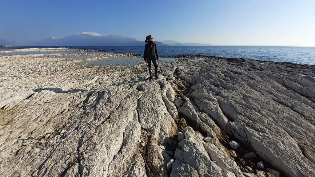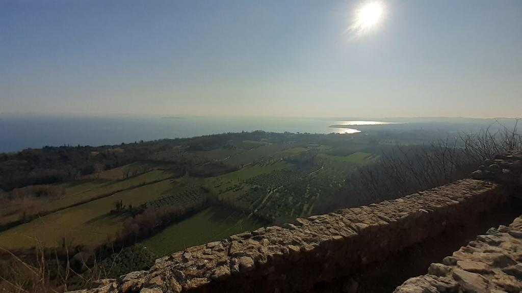 Terzo giorno al Lago di Garda. Oggi siamo a Manerba del Garda (65 m) e, al mattino, raggiungiamo la riva del lago e camminiamo fino a trovarci davanti alla piccola Isola di San Biagio… scopriamo, con meraviglia, che una passerella di sassolini bianchi che sembrano emergere dal lago stesso collega l’isola alla terraferma! La percorriamo ed eccoci su questa bellissima isola… spiagge di pietra bianca che creano piccole “piscine e pozze di acqua naturali”, panorami infiniti e una piccolo promontorio roccioso. Bellissimo!! Lasciamo l’ Isola di San Biagio e ci portiamo sulla spiaggetta direttamente sotto la Rocca di Manerba, dove mangiamo il panino. Seguendo po il percorso definito “breve” raggiungiamo il Quadrivio della Piana (120 m)… a destra (percorso “escursionisti esperti”) si sale alla Punta della Rocca con la croce, a sinistra si sale alla Cima Sasso. Iniziamo a salire alla Rocca di Manerba… il percorso è ripido, disconnesso e con tratti esposti. Eccoci alla Croce della Rocca (220 m)… panorama splendido! Dall’ altra parte della croce inizia il “percorso archeologico” con resti risalenti al medioevo e all’ epoca romana. Scendiamo poi al Quadrivio della Piana (120 m) e saliamo anche alla Cima Sasso (160 m) e qui una piacevolissima scoperta! Dalla Cima Sasso parte un percorso che costeggia una scogliera “a picco verticale” sul lago… favolosa! La percorriamo tutta, fermandoci continuamente per le foto! Torniamo poi alla Cima Sasso (160 m), al Quadrivio della Piana (120 m) e, infine, in riva al lago (60 m). Salutiamo il Lago di Garda e torniamo al parcheggio. Giornata fantastica che concude un fanatastico lungo weekend.