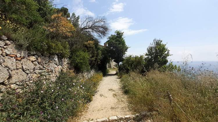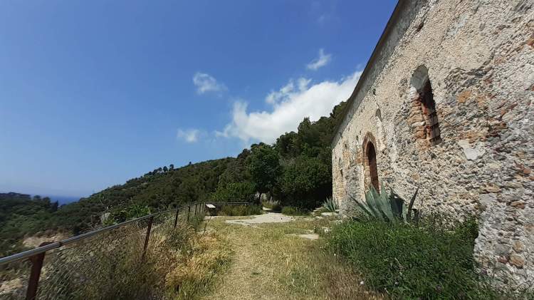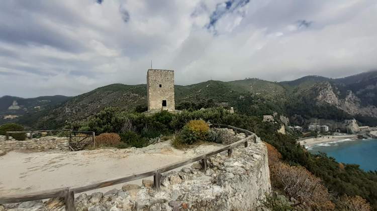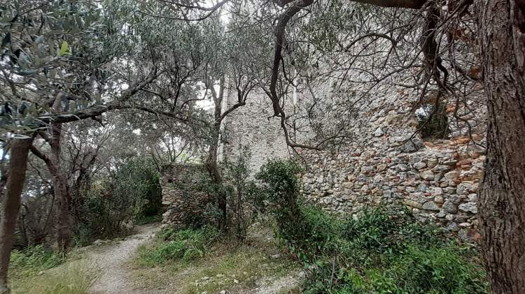 Dalla cittadina di Varigotti si sale lungo un percorso molto semplice e breve e si arriva ad alcuni ruderi (45 m di altitudine), che rappresentano i resti di un doppio circuito murario medioevale. Si presentano come resti di “pareti” di pietra abbandonate e immerse nella vegetazione.