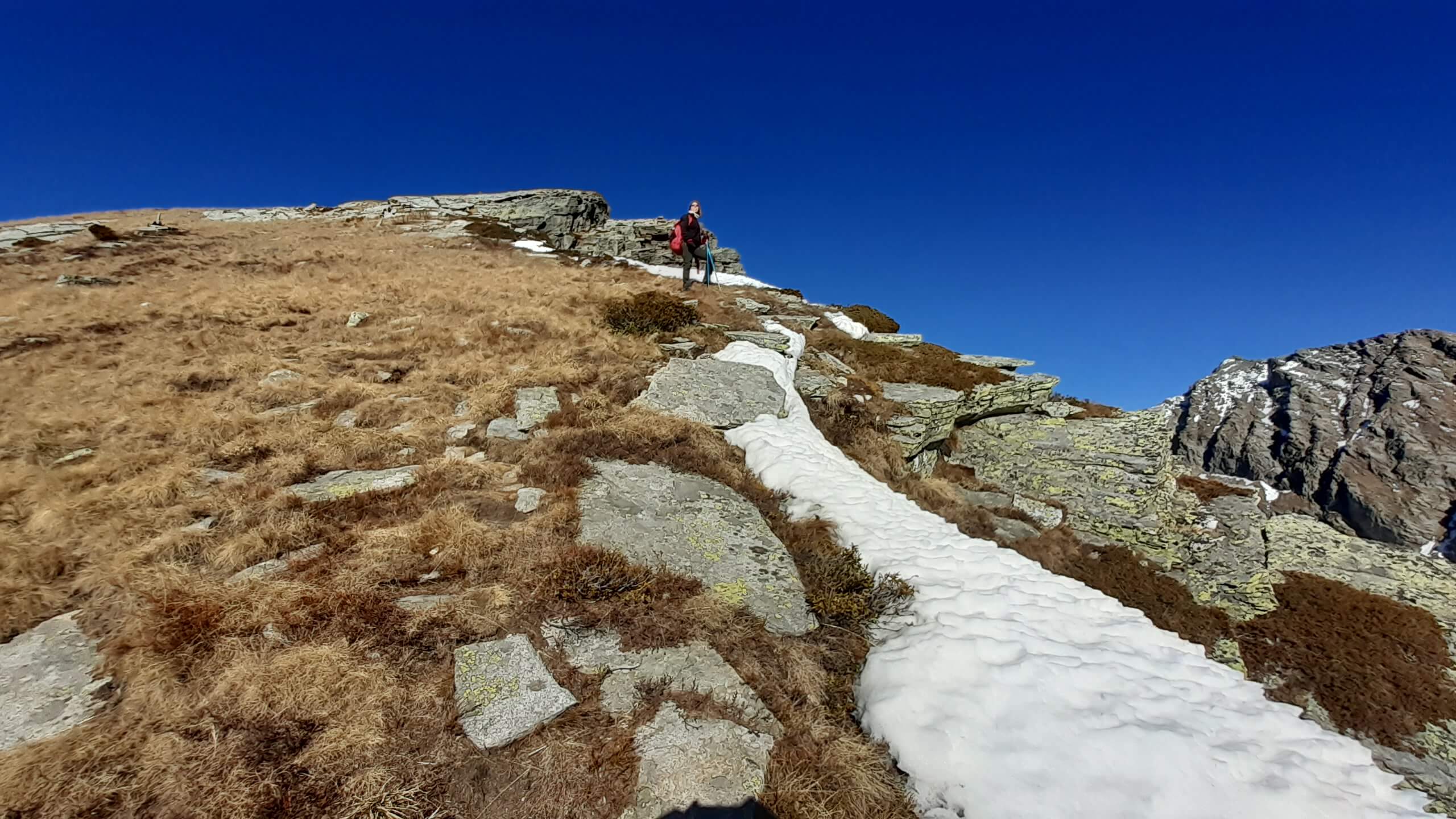 Oggi torniamo in Val Bognanco… abbiamo in mente di salire su una vetta molto panoramica ma che sappiamo già in partenza che si tratta di una vetta difficile e impegnativa. Partiamo da San Bernardo (1630 m) e seguiamo le indicazioni per l’ Alpe Paione, passando sul ponte del rio Rasiga e poi, tramite “direttissima”, passando davanti al Rifugio Il Dosso (1740 m). Arrivati all’ Alpe Paione (1790 m) troviamo le indicazioni per i Fortini Militari e la Costa del Dosso… quindi iniziamo a salire a sinistra, su sentiero segnato e sempre visibile. Arriviamo al Primo Fortino (1890 m)… una costruzione semicircolare fatta di pietra. Piccola sosta per le foto e poi si sale ancora, anche su tratti di pietraia e sassaia, fino al Secondo Fortino (1960 m)… il panorama è sempre più ampio. Saliamo ancora, su sassaia e pietraia, e arriviamo al Terzo Fortino (2030 m)… fortino di forma semicircolare un po’ più grande. E adesso si prosegue lungo tutta la Costa del Dosso… percorso tracciato (quasi sempre ma comunque sempre visibile), molto ripido, a tratti disconnesso; la pietraia e la sassaia lasciano il posto ad un sentiero su terra, erba, cespugli e piccoli rovi. Si arriva fino al primo piccolo omino di vetta (2100 m)… panorama eccezionale! Da qui la Cima della Costa del Dosso è ben visibile… ma ancora lontana! Mi guardo intorno…. Lago di Ragozza, Bocchetta di Gattascosa, Cima Mattaroni, Cima del Tirone, Passo del Monscera, Pizzo Pioltone, Pizzo Giezza… e l’ Alpe Paione si vede anche da qui, piccolissima! Continuiamo a salire…. ripidamente e stando attenti ad aggirare le piccole e poche “strisce di neve” che incontriamo. Si prosegue su una cresta sufficientemente ampia, ma con “strapiombi” molto verticali ai lati! La salita è davvero ripida e impegnativa… una dura prova per gambe e fiato. Arriviamo così all’ ultimo “strappo” che è formato da una “piodata finale”…. piode una accanto all’ altra (alcune presentano tra loro dei canalini di erba o neve ghiacciata!) molto ripide e molto esposte! Non ci sono catene, funi o corde e gli appigli sono davvero pochi! Quest’ ultimo tratto è, di conseguenza, anche pericoloso! Con molta calma, attenzione, prudenza e, di sicuro, anche una buona dose di coraggio riusciamo ad arrivare in cima…. siamo sulla Cima della Costa del Dosso (2490 m)!!! E qui il panorama è qualcosa di incredibilmente unico!! I Laghi del Paione, il Passo Paione, il Lago di Agro si aggiungono al panorama che ci ha accompagnato per tutta la salita! Cerchiamo un posticino dove mangiare… di spazio ce n’ è poco, ma riusciamo a sederci su alcune pietre. Ultime foto all’ omino di vetta, video… ma soprattutto tanta tanta ammirazione! Con la stessa prudenza e con la stessa attenzione scendiamo lungo la “piodata finale” e, dopo averla superata, raggiungiamo di nuovo verso il primo omino di vetta (2100 m). Piccola pausa e poi giù… verso il Terzo Fortino Militare (2030 m)… il Secondo Fortino Militare (1960 m)… il Primo Fortino Militare (1890 m). Infine torniamo all’ Alpe Paione (1790 m) dove facciamo una piccola pausa-barretta e, su comodo percorso che si sviluppa sui tornanti, eccoci al ponte sul rio Rasiga e da lì, in poco, terminiamo il percorso al parcheggio di San Bernardo (1630 m). Giornata SPETTACOLARE con una salita impegnativa che ci ha regalato una soddisfazione infinita.