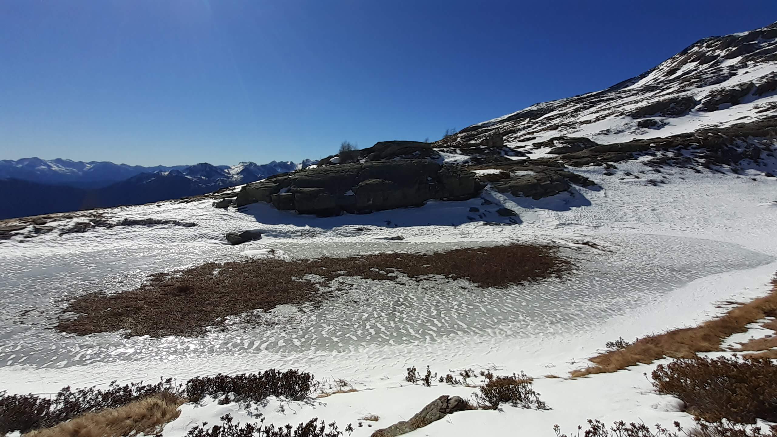 CONSIGLI come tutti i percorsi in montagna anche questo va affrontato con il giusto allenamento fisico e con la giusta attenzione. Questo percorso è piuttosto lungo e impegnativo; le difficoltà si presentano dopo l’ Alpe di Variola Superiore, dove non ci sono più indicazioni/bolloni indicativi e la neve copre il percorso che non è sempre facile da individuare; i 2 Laghi più alti si raggiungono con percorso piuttosto ripido che presenta neve (a tratti ghiacciata a tratti morbida!) intatta e, quindi, non tracciata e non segnata.