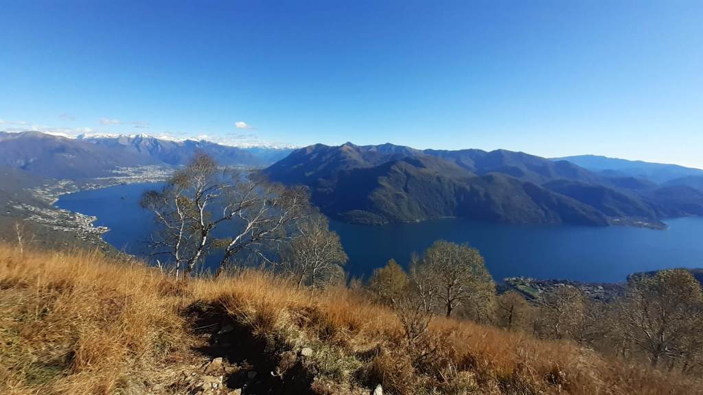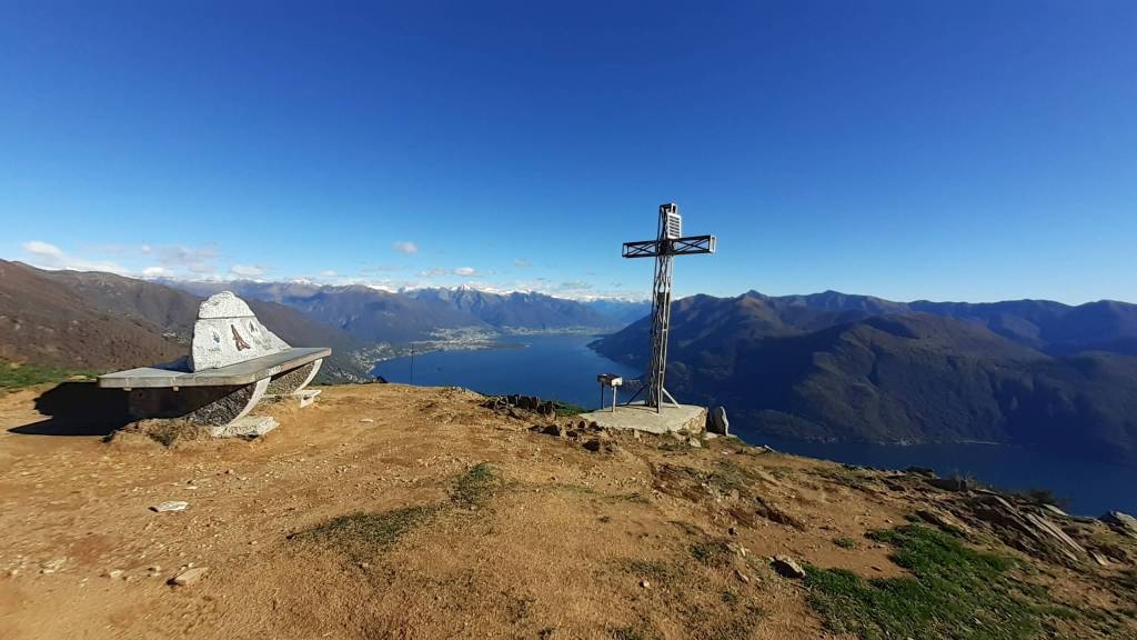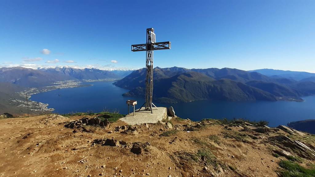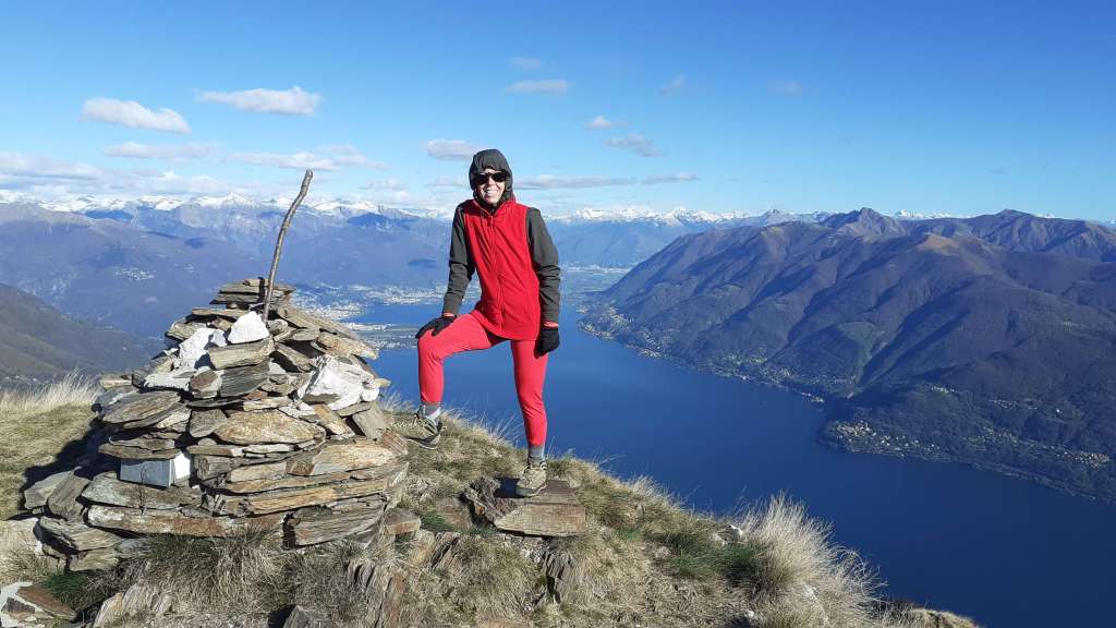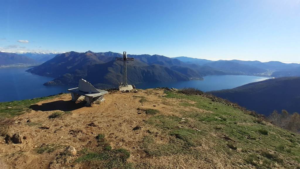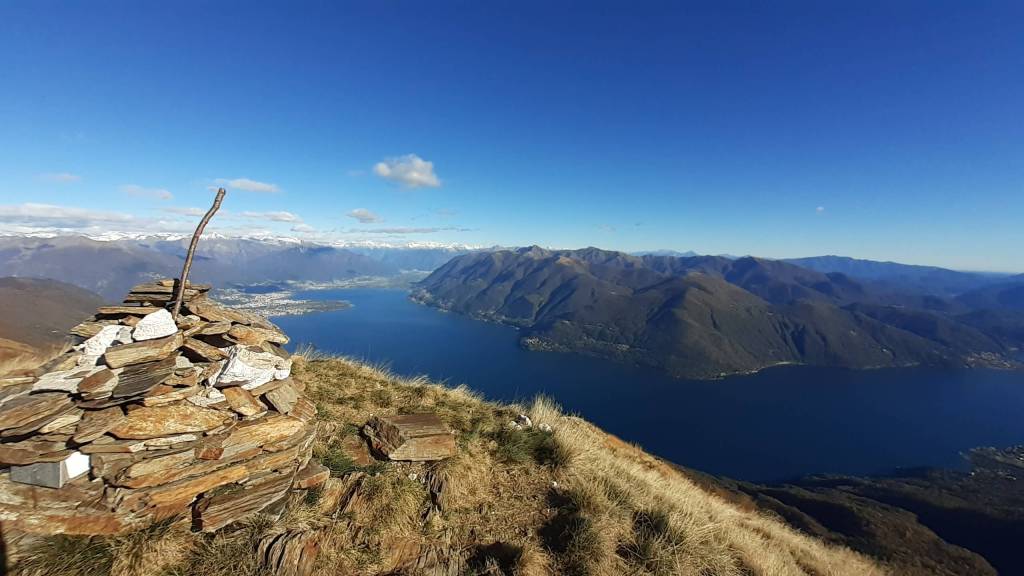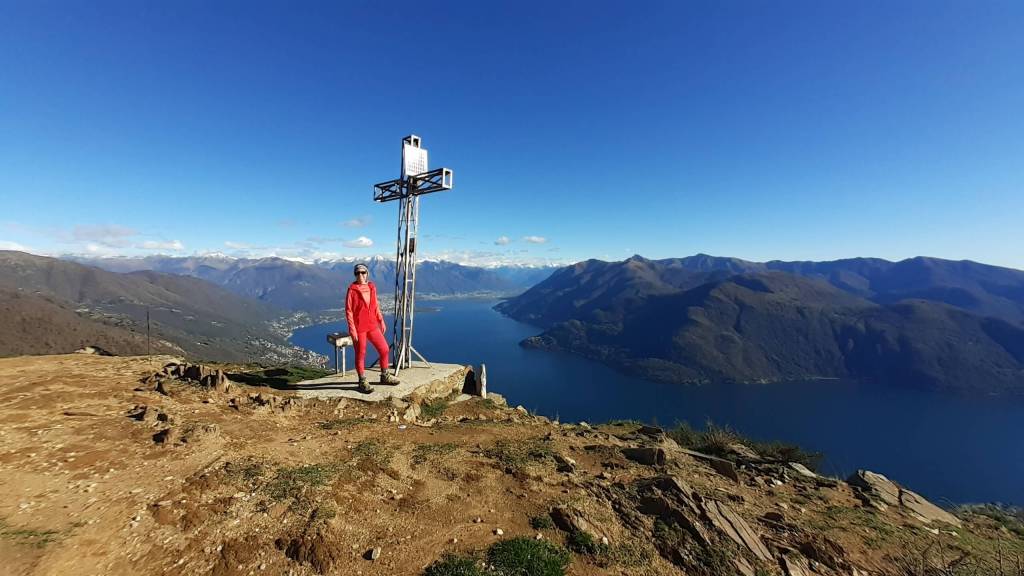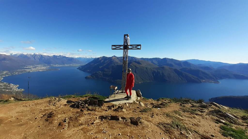 Oggi siamo in Val Cannobina. Partiamo da Sant’ Agata (450 m), frazione di Cannobio e, seguendo le indicazioni e i bolli bianco-rossi, saliamo verso la piccola Chiesetta di San Luca (690 m) e, da qui, verso i Monti Marcalone (870 m). Il sentiero diventa un’ ampia e comoda strada, un po’ sterrata e un po’ asfaltata, che ci porta “ai piedi” del Monte Giove. Un ultimo strappo, su sentiero ripido e a tratti disconnesso, arriva alla Vetta del Monte Giove (1300 m). Il panorama è davvero immenso… sul Lago Maggiore e sulle montagne intorno. Piccola pausa e poi proseguiamo oltre la vetta, perdendo quota fino alle località Rombiago e Scierz (1190 m). Subito dopo Scierz iniziamo a salire lungo la Cresta Sud-Est del Monte Gridone, su sentiero prima nel bosco e poi sui 4 panoramici dossi (o anticime del Monte Faierone) (da 1570 m a 1700 m)… la ripidità è sempre costante. Ed eccoci sulla Vetta del Monte Faierone (1720 m)! Il panorama si moltiplica dappertutto! La vista spazia dappertutto! Bellissimo!! Si alza anche il vento e, così, ci prepariamo a scendere, lungo lo stesso percorso della salita, ma mantenendoci “ai piedi” del Monte Giove e poi di nuovo ai Monti Marcalone (870 m). Da qui, invece, allunghiamo il percorso passando per la frazione di Socragno (470 m) e, infine, torniamo al parcheggio di Sant’ Agata (450 m). Giornata davvero impegnativa ma davvero spettacolare… un “trekking lago e monti” da ricordare!