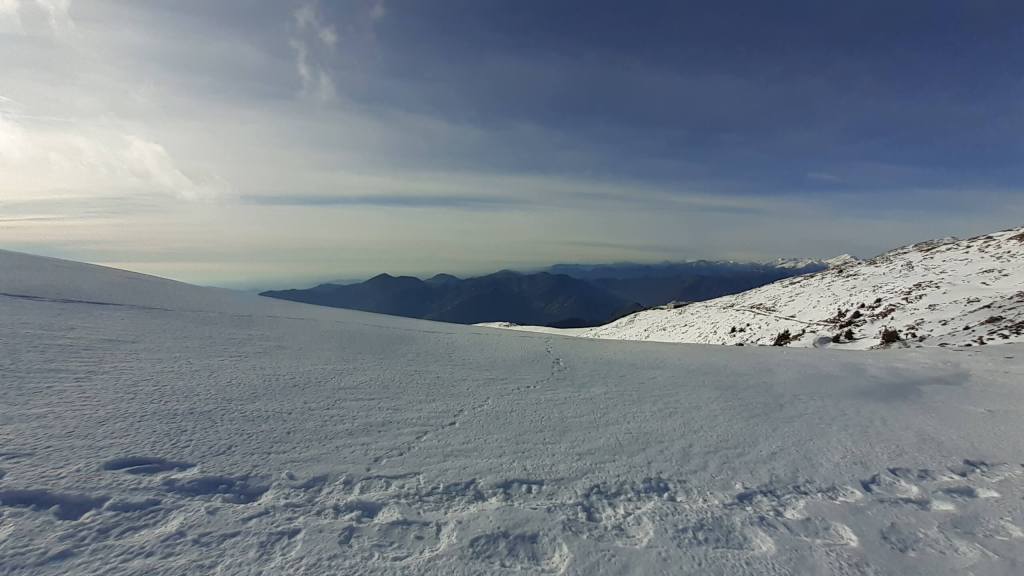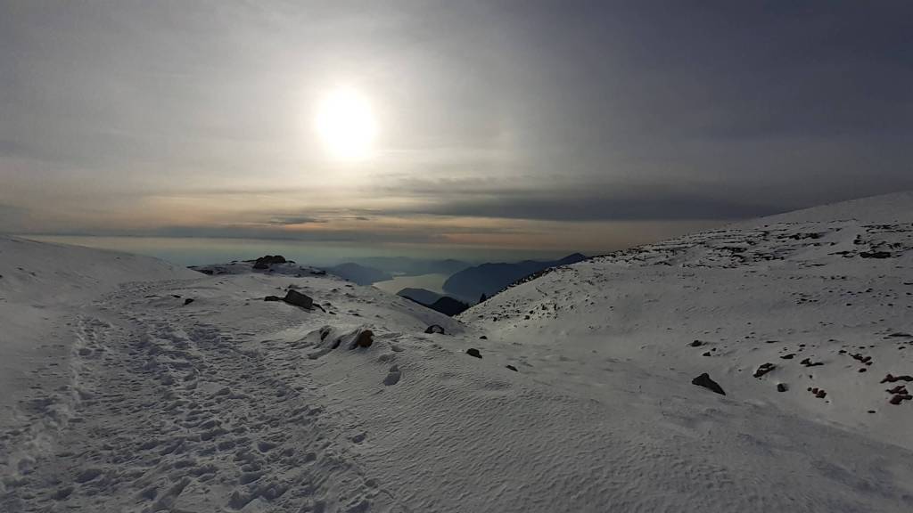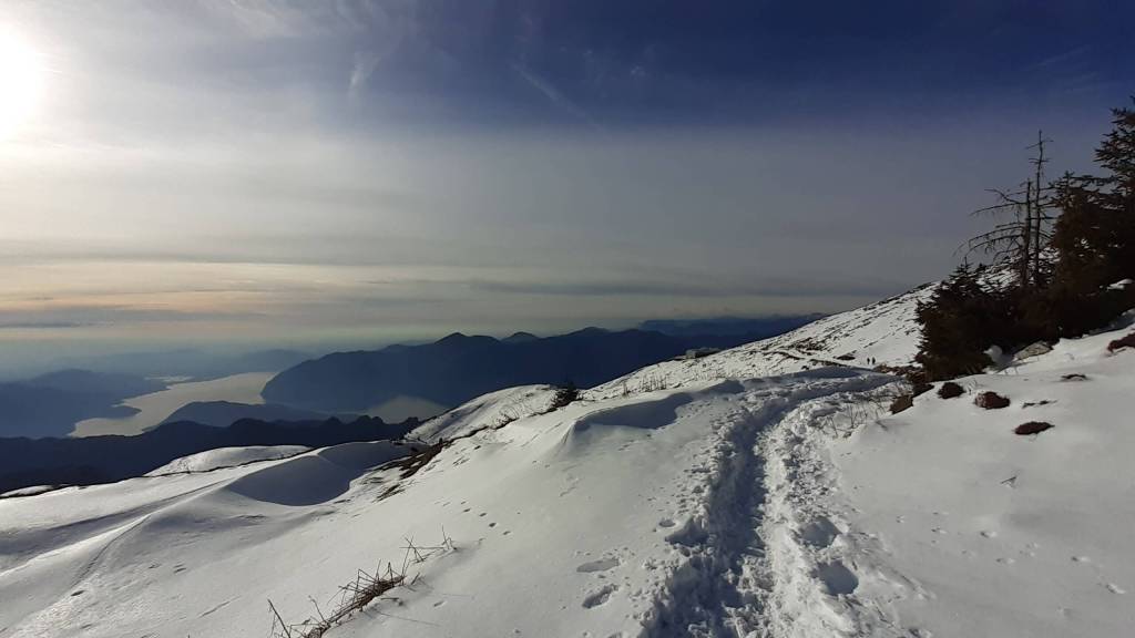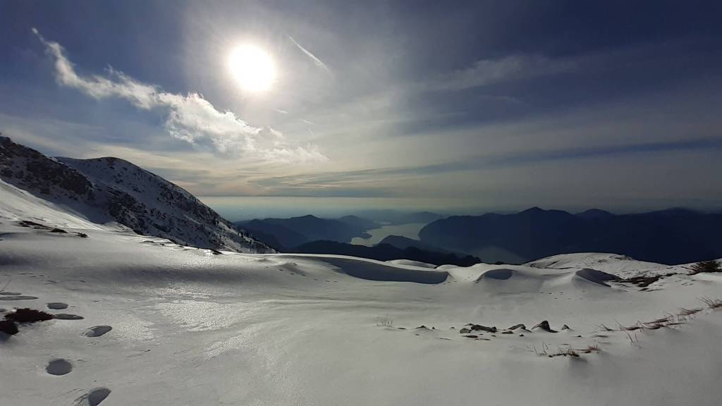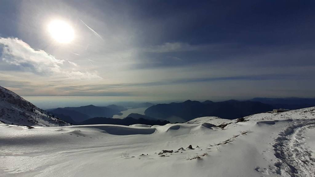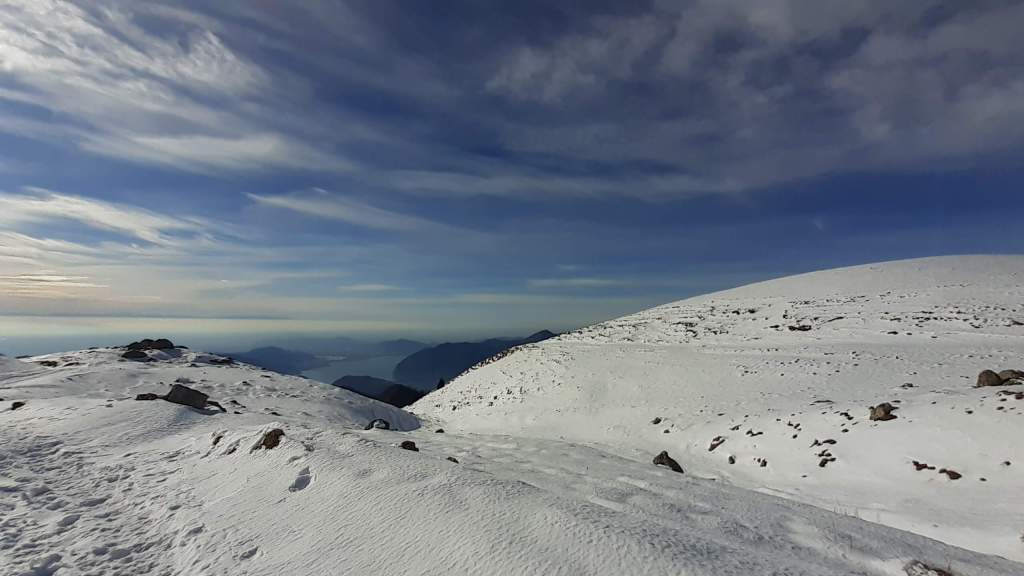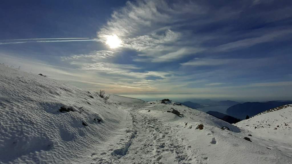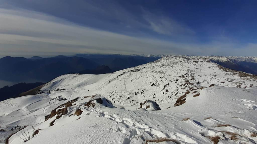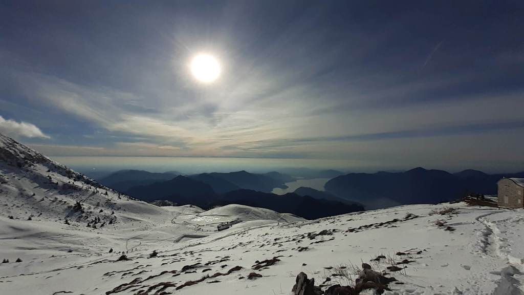 Inizia il weekend! Siamo a Zone (690 m) e da qui partiamo (alle spalle dell’ area sosta camper). Procediamo su asfalto per un primo tratto e poi su trattorabile e carrozzabile fino al Rifugio Croce di Marone (1166 m) e poi al Rifugio Malpensata (1348 m). Subito dopo il rifugio saliamo a sinistra e prendiamo la “direttissima”, ripida, pietrosa e con diversi passaggi su rocce e roccette, che ci porta alla Malga Guglielmo di sotto (1650 m). Fin qui niente neve ma da qui inizia un sottile strato che diventa sempre più alto ma si procede tranquillamente solo con i ramponcini. Arriviamo alla Malga Guglielmo di sopra (1750 m), dove mangiamo il nostro panino. Qui la bolla è coperta di neve e appare come un piccolo e bellissimo laghetto alpino! Proseguiamo poi fino al Rifugio Almici (1865 m) e poi un traverso e un ultimo strappo ci portano sulla Vetta del Monte Guglielmo (1950 m) con il suo bellissimo monumento al Cristo Redentore. (C’ è più neve, ma una traccia ben segnata e visibile aiuta la salita). Pausa fotografica e di ammirazione… sulle montagne intorno e verso il Lago d’ Iseo… e poi iniziamo la discesa. Di nuovo al Rifugio Almici (1865 m), alla Malga Guglielmo di sopra (1750 m) e alla Malga Guglielmo di sotto (1650 m). Da qui proseguiamo dritti e, un po’ lungo i tornanti e un po’ lungo alcuni tratti in “direttissima” (meno ripidi della salita e principalmente su terra), torniamo al Rifugio Malpensata (1348 m) e al Rifugio Croce di Marone (1166 m). Infine eccoci di nuovo a Zone e al parcheggio (690 m). Percorso lunghissimo e con un importante dislivello… ma una giornata davvero stupenda e indimenticabile!