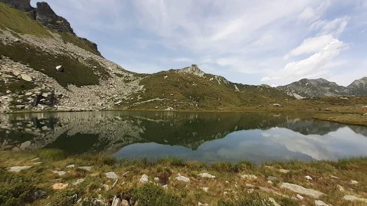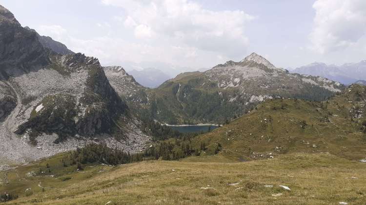 Un’ altra bella giornata di sole e caldo… andiamo in Val Vigezzo! Arriviamo al piccolo paesino di Arvogno, proseguiamo oltre e troviamo parcheggio nei pressi della seggiovia (1230 m). Raggiungiamo l’ attacco del sentiero e prendiamo a destra verso l’ Alpe Verzasco che raggiungiamo in circa 15 minuti (1393 m). Continuiamo il percorso che si sviluppa su mulattiera di pietre e terra e arriviamo al secondo alpeggio abbandonato, l’ Alpe Villasco (1644 m). Pausa barretta e poi saliamo, sempre su mulattiera che alterna da adesso anche tratti erbosi. La pendenza è sempre costante e la ripidità, a tratti, diventa accentuata. Ed eccoci al terzo alpeggio, l’ Alpe I Motti (1844 m)… un alpeggio piuttosto grande e qui ci fermiamo per una piccola pausa “fotografica”… la Pioda di Crana, il Pizzo Ruggia e il Pizzo di Fontanalba appaiono uno più bello dell’ altro. Proseguiamo ancora sulla mulattiera, adesso più stretta, che ci porta fino alla Cappella di San Pantaleone (1992 m) e da qui seguiamo il sentiero che ci conduce fino al bellissimo specchio d’ acqua del Lago Panelatte (2062 m). Il Lago è di una bellezza incredibile e nasce all’ interno di una splendida conca circondata da versanti rocciosi, pizzi e verdi vallate. Facciamo il giro e ci portiamo alla fine del Lago, dove mangiamo su alcune grosse rocce, mentre il Pizzo Ruggia e il Pizzo di Fontanalba, nei momenti in cui l’ acqua è calma, si specchiano perfettamente lungo la sua superficie. Torniamo al principio del Lago e prendiamo a sinistra su sentiero ripido e a tratti disconnesso, fino a raggiungere la Forcola di Larecchio (2146 m)… da qui il panorama spazia fino al Lago di Larecchio e a tutte le montagne che lo circondano. Adesso era in programma la discesa, ma siamo attratti dal Pizzo della Forcola…. capiamo subito che la salita è piuttosto impegnativa, ma ci proviamo lo stesso. Il Pizzo della Forcola si presenta come un complesso di tre dossi (il primo erboso/roccioso; il secondo erboso e il terzo molto roccioso e pietroso, quasi verticale!). Arriviamo fino al secondo dosso e ci portiamo ai piedi della “bastionata” rocciosa (2230 m) che porta alla vetta, posta a 2260 m. Scuoto il capo… un po’ troppo rischioso e, inoltre, è già pomeriggio inoltrato! Alzo gli occhi, ne ammiro la sagoma a soli 30 m dalla vetta…. mi sembra quasi di toccarla… in cuor mio l’ ho raggiunta; sorrido e si inizia la discesa. Raggiungiamo la Forcola di Larecchio (2146 m), una piccola bolla di acqua, di nuovo il bellissimo Lago Panelatte (2062 m) e poi decidiamo di raggiungere il Passo di Fontanalba (2024 m); da qui ancora la Cappella di San Pantaleone (1992 m), l’ Alpe I Motti (1844 m), l’ Alpe Villasco (1644 m), dove facciamo la pausa-barretta del pomeriggio, l’ Alpe Verzasco (1393 m) e, infine, torniamo al parcheggio della nostra macchina (1230 m). Spettacolare giornata… da “incorniciare”… in un ambiente unico e bellissimo dove la salita “in solitaria” (pochissime persone incontrate durante tutta la giornata!) ci ha regalato panorami infiniti, soddifazione e un senso assoluto di pace e di silenzio.