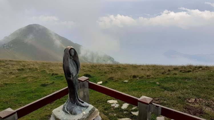 Oggi il tempo e il meteo non sono clementi… un po’ come tutto il weekend! Decidiamo di fare qualcosa ma scegliamo un percorso che conosciamo piuttosto bene, semplice e “modulabile” in base all’ evolversi del meteo. Andiamo in Valle Intelvi; raggiungiamo il Rifugio Alpe Colonno, proseguiamo verso il Rifugio Boffalora e continuiamo in macchina fino al Rifugio Venini (1576 m)… considerate le condizioni meteo ci portiamo il più vicino possibile al percorso. Mangiamo in macchina e poi partiamo verso la vetta del Monte di Tremezzo… il cielo è coperto di nubi e le nuvole basse non permettono la visione del panorama. In poco raggiungiamo la vetta del Monte di Tremezzo (1700 m) con la sua bellissima statua. Proseguiamo fino all’ Alpe di Tremezzo (1600 m)… qualche foto “tra le nuvole” e poi saliamo alla vetta del Monte Crocione (1640 m) con la sua grande e bella croce. Da qui il panorama, di solito, è immenso… un vero e proprio “balcone sul Lago di Como e su Bellagio” , ma oggi ci accontentiamo di quello che riusciamo a vedere e a scorgere tra le nuvole e la nebbia. Torniamo giù all’ Alpe di Tremezzo (1600 m) e decidiamo di continuare seguendo il percorso che passa per l’ Alpe di Mezzegra (ai piedi del Monte di Tremezzo); da qui continuiamo su strada militare fino al Rifugio Venini (1576 m)… gli ultimi 10 minuti sotto un inizio di pioggia! Saliamo in macchina e… inizia a piovere più forte (giusto in tempo per non bagnarci!) Nonostante il tempo brutto, siamo riusciti lo stesso a trascorrere una mezza giornata in montagna!!