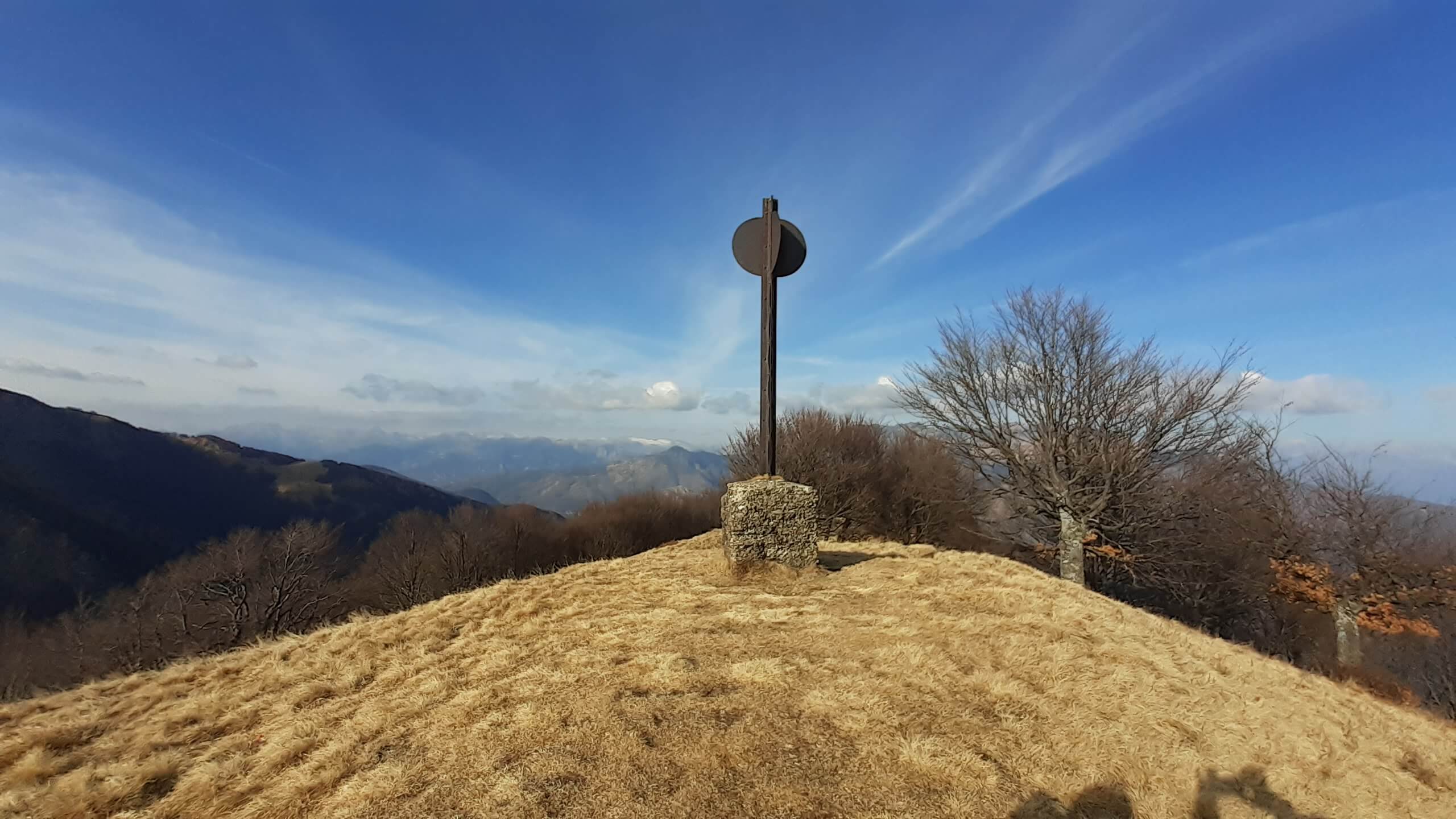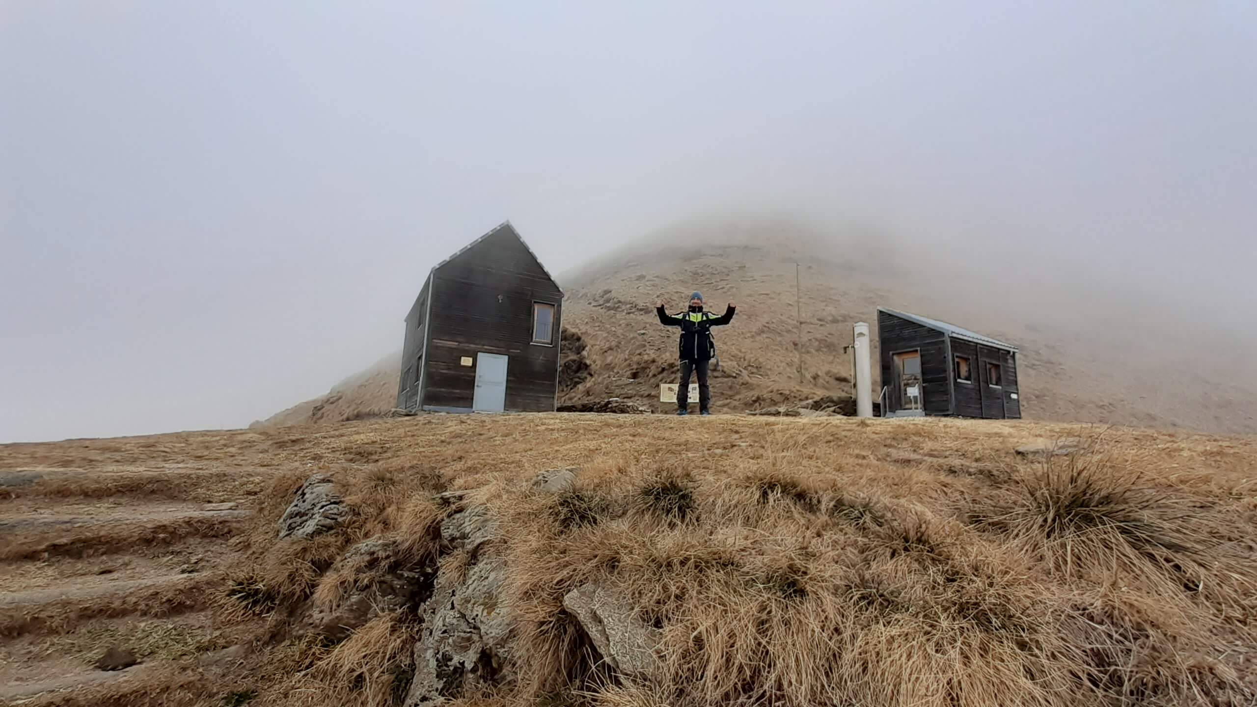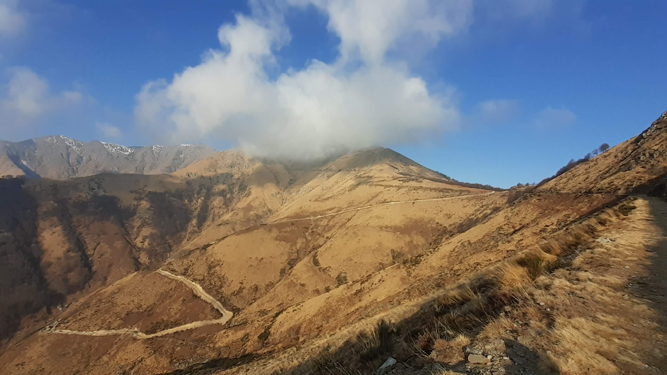 Oggi andiamo in Valle Intrasca, ai margini della Val Grande… l’ idea era quella di raggiungere il Monte Zeda, ma l’ improvviso peggioramento del tempo ci porta a riprogrammare la giornata che, alla fine, ci ha regalato comunque una piacevolissima salita. Arriviamo alla località Il Colle e proseguiamo in macchina (per altri 4,5 km circa su strada sterrata, non comoda e un po’ disconnessa) fino a Pian Puzzo (1290 m). Da qui prendiamo la mulattiera militare (tenuta molto bene) e ne seguiamo tutti i tornanti… lunghi ma mai noiosi. Il cielo sono presenti delle nuvole ma, per ora, il tempo resiste. Arriviamo così a Passo Folungo (1369 m) e continuiamo sempre su mulattiera militare, mentre il tempo inizia a peggiorare in modo rapido… siamo ormai all’ interno delle nuvole e della nebbia! Proseguiamo e si alza anche il vento… proseguiamo e inizia anche a nevischiare! Decidiamo di raggiungere almeno il Rifugio/Bivacco del Pian Vadà (1711 m) e poi il bivio per salire al Monte Zeda ma non si vede praticamente niente… neanche la cresta che porta alla vetta del Monte Zeda! Non conosciamo il percorso, non si vede nulla e sarebbe un azzardo continuare… quindi decidiamo di riprogrammare la salita. Nonostante il vento, saliamo alla Cima Quota 1836, una bella cimetta ma oggi senza panorama! Scendiamo e torniamo al Rifugio/Bivacco del Pian Vadà (1711 m), dove cerchiamo un posticino riparato dal vento gelido per mangiare il nostri panino. Scendiamo poi sempre su mulattiera, mentre il tempo accenno a migliorare e arriviamo di nuovo a Passo Folungo (1369 m)… adesso sta uscendo anche il sole! Decidiamo così di salire anche al Monte Bavarione… una bella montagna, la cui anticima presenta i resti di antiche trincee. Siamo in vetta al Monte Bavarione (1505 m)… adesso il panorama, ormai sgombro da nuvole e nebbia, si mostra in tutta la sua bellezza! Piccola pausa e poi ci apprestiamo a scendere… Passo Folungo (1369 m) e poi gli ultimi tornanti di mulattiera militare fino a tornare a Pian Puzzo (1290 m). Giornata iniziata in modo molto incerto… ma che poi si è rivelata una bella e interessante giornata in un luogo che conosciamo poco ma che merita davvero tanto!