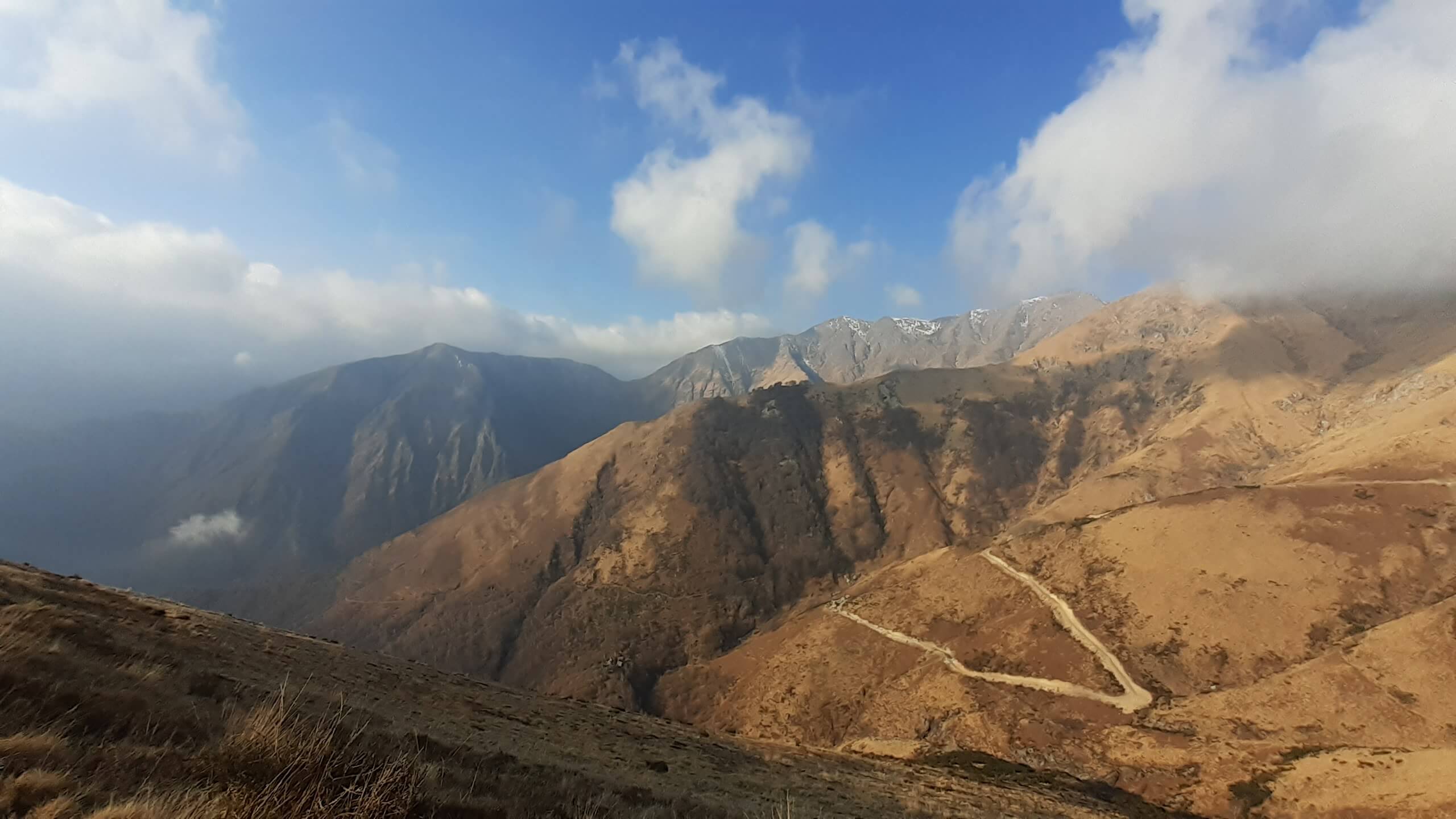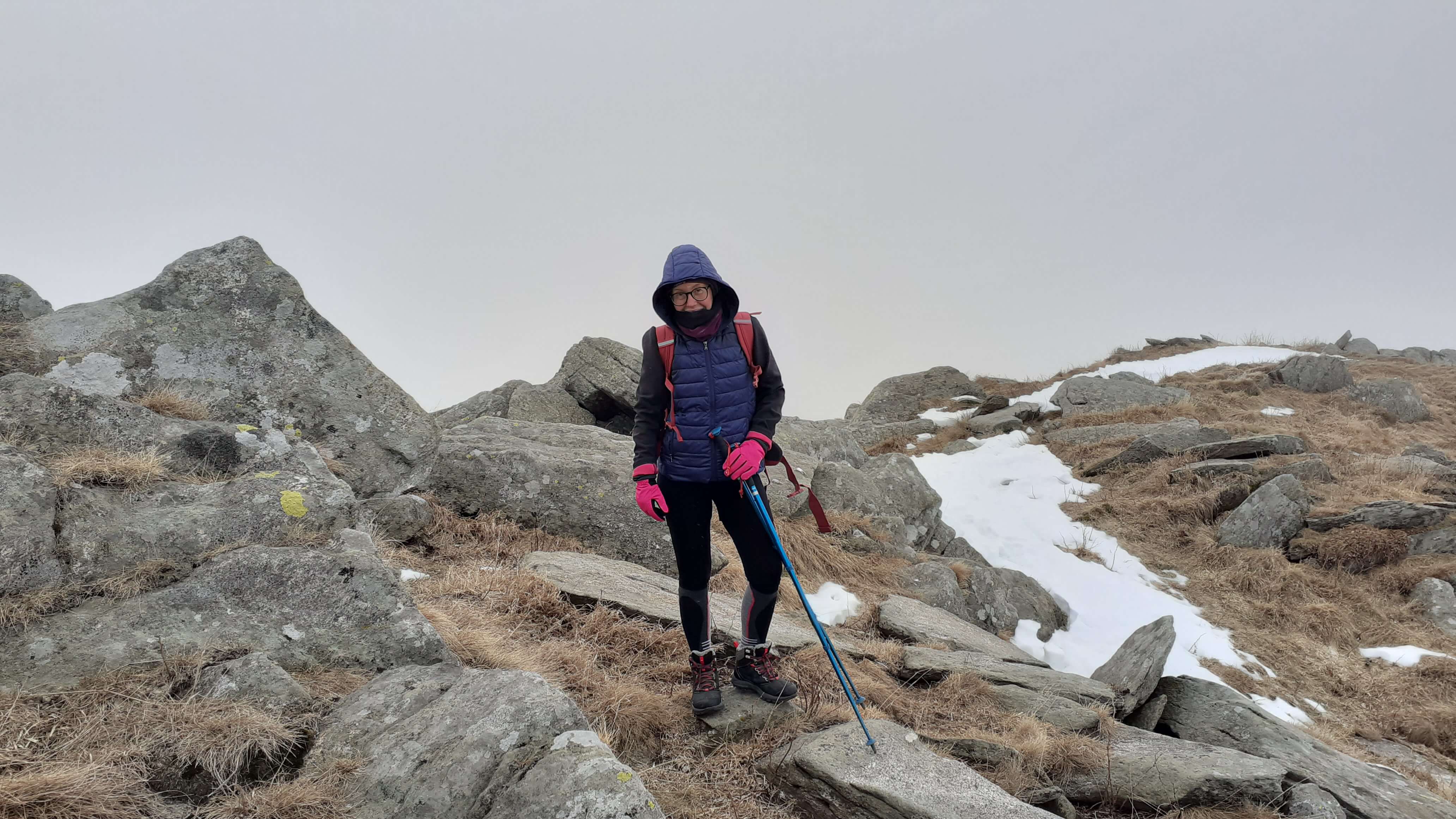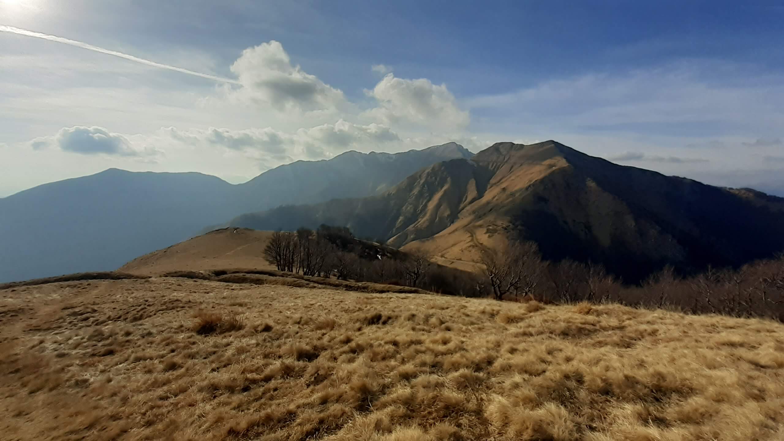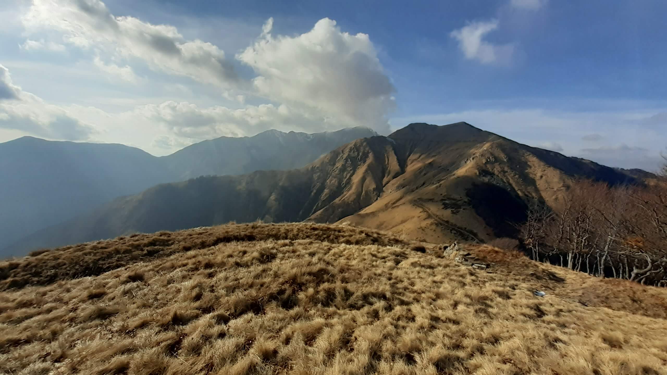 Oggi andiamo in Valle Intrasca, ai margini della Val Grande… l’ idea era quella di raggiungere il Monte Zeda, ma l’ improvviso peggioramento del tempo ci porta a riprogrammare la giornata che, alla fine, ci ha regalato comunque una piacevolissima salita. Arriviamo alla località Il Colle e proseguiamo in macchina (per altri 4,5 km circa su strada sterrata, non comoda e un po’ disconnessa) fino a Pian Puzzo (1290 m). Da qui prendiamo la mulattiera militare (tenuta molto bene) e ne seguiamo tutti i tornanti… lunghi ma mai noiosi. Il cielo sono presenti delle nuvole ma, per ora, il tempo resiste. Arriviamo così a Passo Folungo (1369 m) e continuiamo sempre su mulattiera militare, mentre il tempo inizia a peggiorare in modo rapido… siamo ormai all’ interno delle nuvole e della nebbia! Proseguiamo e si alza anche il vento… proseguiamo e inizia anche a nevischiare! Decidiamo di raggiungere almeno il Rifugio/Bivacco del Pian Vadà (1711 m) e poi il bivio per salire al Monte Zeda ma non si vede praticamente niente… neanche la cresta che porta alla vetta del Monte Zeda! Non conosciamo il percorso, non si vede nulla e sarebbe un azzardo continuare… quindi decidiamo di riprogrammare la salita. Nonostante il vento, saliamo alla Cima Quota 1836, una bella cimetta ma oggi senza panorama! Scendiamo e torniamo al Rifugio/Bivacco del Pian Vadà (1711 m), dove cerchiamo un posticino riparato dal vento gelido per mangiare il nostri panino. Scendiamo poi sempre su mulattiera, mentre il tempo accenno a migliorare e arriviamo di nuovo a Passo Folungo (1369 m)… adesso sta uscendo anche il sole! Decidiamo così di salire anche al Monte Bavarione… una bella montagna, la cui anticima presenta i resti di antiche trincee. Siamo in vetta al Monte Bavarione (1505 m)… adesso il panorama, ormai sgombro da nuvole e nebbia, si mostra in tutta la sua bellezza! Piccola pausa e poi ci apprestiamo a scendere… Passo Folungo (1369 m) e poi gli ultimi tornanti di mulattiera militare fino a tornare a Pian Puzzo (1290 m). Giornata iniziata in modo molto incerto… ma che poi si è rivelata una bella e interessante giornata in un luogo che conosciamo poco ma che merita davvero tanto!