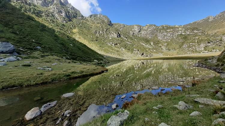 Oggi organizziamo una giornata in montagna su un percorso non particolarmente difficile ma molto panoramico ed interessante… in una valle che non conosciamo molto, la Valsesia e precisamente nella valle del torrente Mastallone, la Val Mastallone. Arriviamo a Fobello e raggiungiamo in macchina la località “La Gazza” dove riusciamo a trovare parcheggio (1175 m). Iniziamo a salire su comoda a ampia mulattiera e il panorama è già ampio e, in poco, si può ammirare, anche se da lontano, la Cascata dei Pissoni. Arriviamo al ponte in muratura che passa sul torrente Mastallone, torrente che affiancheremo per tutto il percorso. Arriviamo all’ Alpe Baranca (1570 m) e, subito dopo, al Rifugio Alpe Baranca (1600 m). Continuiamo, sempre su mulattiera, fino ad una piccola cappella dove facciamo una breve pausa. Riprendiamo a salire, mentre il sentiero diventa adesso più stretto e più ripido e costeggia proprio la cascata che scende dal Lago Baranca e dà origine al torrente Mastallone. In poco siamo al Lago Baranca (1810 m)… anche se piccolo, questo specchio d’ acqua è davvero molto bello e le montagne si riflettono in modo quasi maestrale. Seguiamo la traccia del sentiero che ci porta all’ Alpe Selle sul Colle Baranca (1825 m), dove cerchiamo un posticino per mangiare il nostro panino. Da qui si vedono già i resti di Villa Aprila, che raggiungiamo subito dopo la pausa-pranzo. Villa Aprilia (ovvero i resti che rimangono di questa villa) sono situati su un piccolo promontorio che si affaccia sul Colle Baranca e sul Lago Baranca. I resti non sono tenuti benissimo e i cartelli di pericolo indicano un edificio abbandonato nel tempo e, in parte, ancora pericolante. Nonostante questo, la collocazione e lo stile di inizio ‘900 delle parti che hanno resistito conferiscono al luogo un tocco di unicità. Stiamo giusto il tempo delle foto e poi torniamo all’ Alpe Selle (1825 m) e poi al Lago Baranca (1810 m). Altre foto da diverse angolazioni e poi scendiamo, ripercorrendo lo stesso itinerario dell’ andata, passando quindi per il Rifugio Alpe Baranca (1600 m), per l’ Alpe Baranca (1570 m) e, infine, torniamo alla località “La Gazza” (1175 m). Una bellissima giornata in montagna… con il valore aggiunto di un po’ di storia e, perché no, anche un po’ di arte.
